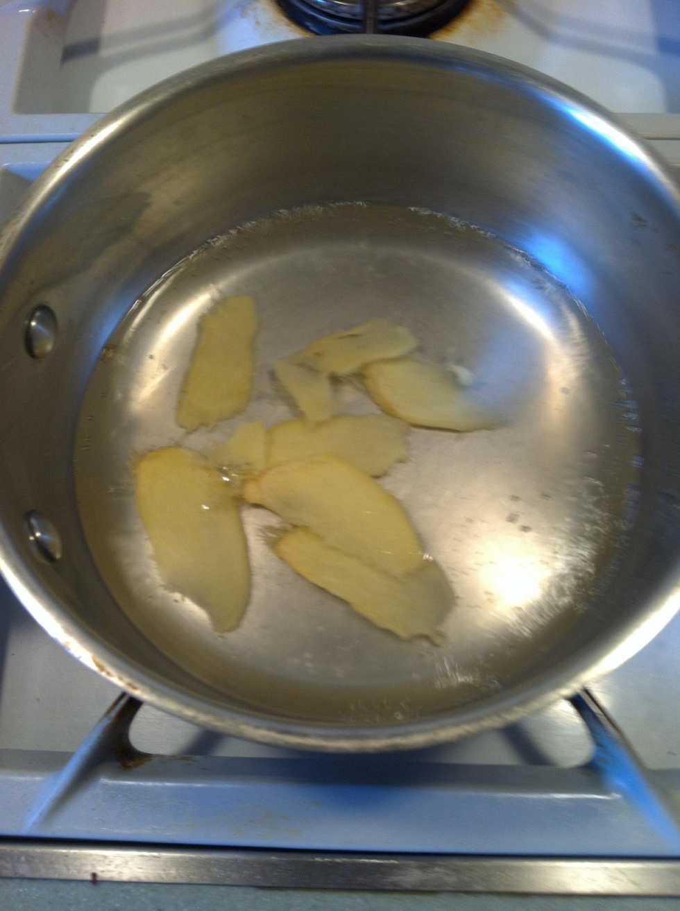 Allow your syrup to cool before transferring to the storage container. I like to reuse glass jars. Label your jar for the flavor. I just left pieces of ginger in the syrup. You can eat the ginger too.