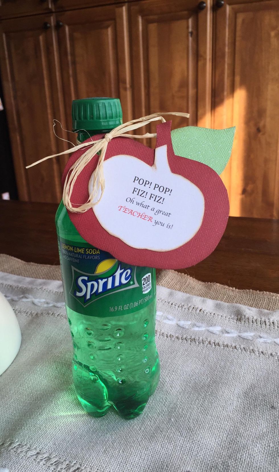 Attach your apple to a bottle of soda of your choice with some string. Perfect for a simple thank you for your kids teachers.