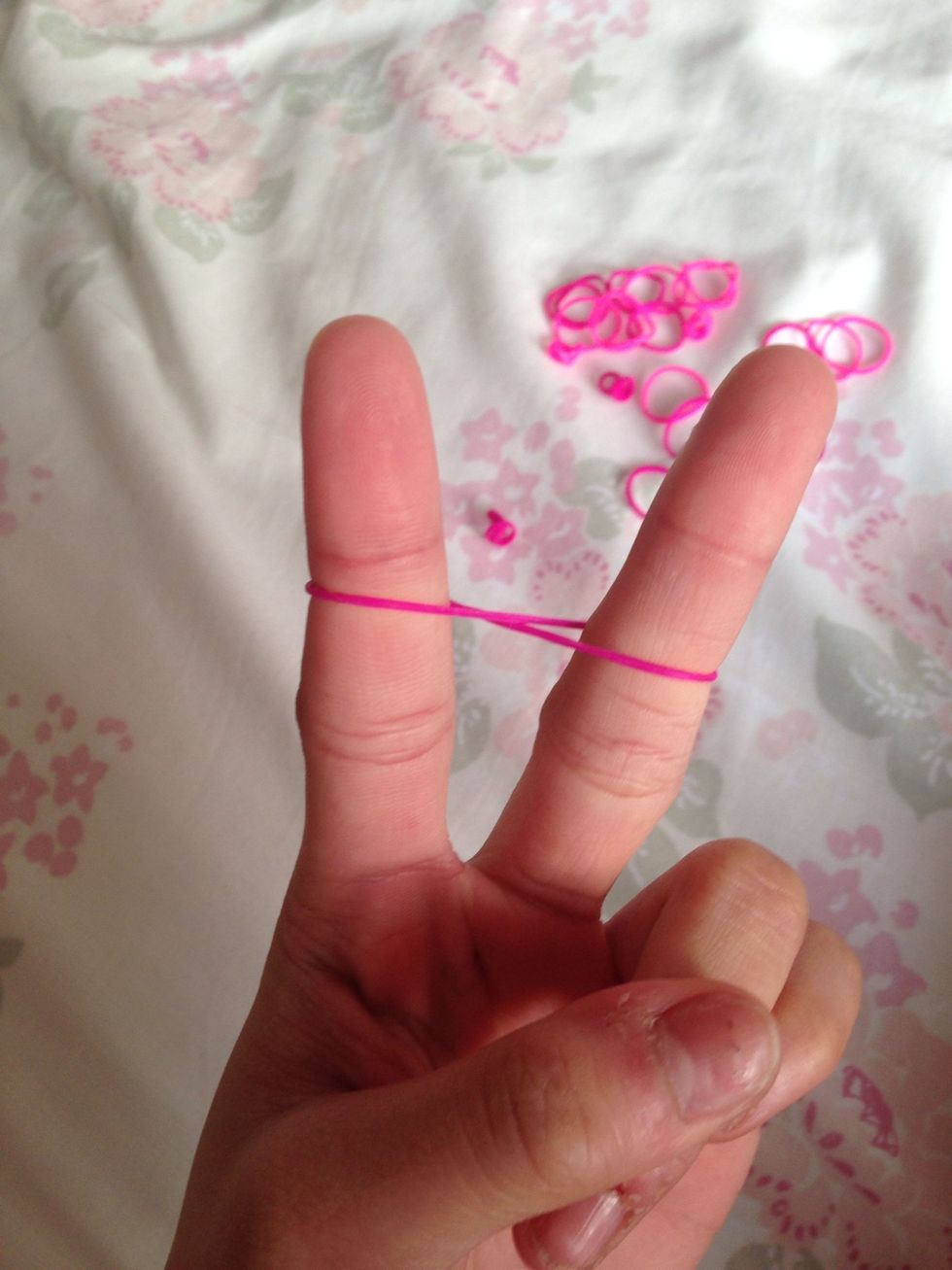 Make a figure eight or 'infinity' on your pointer and middle finger with one band.
