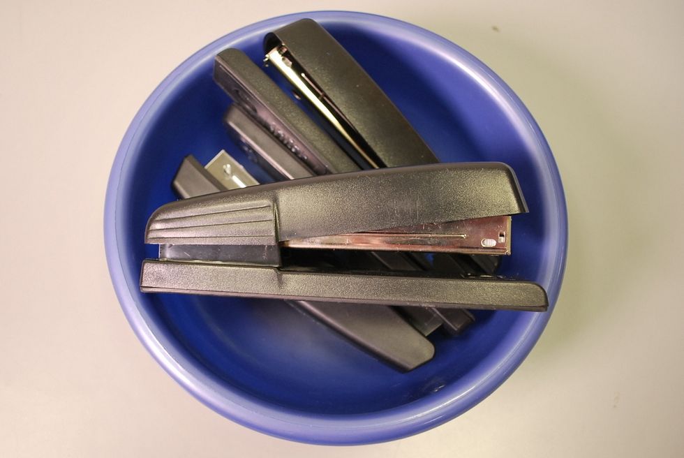 To get started you'll need paper, a staw, two rubber bands, scissors and a stapler.