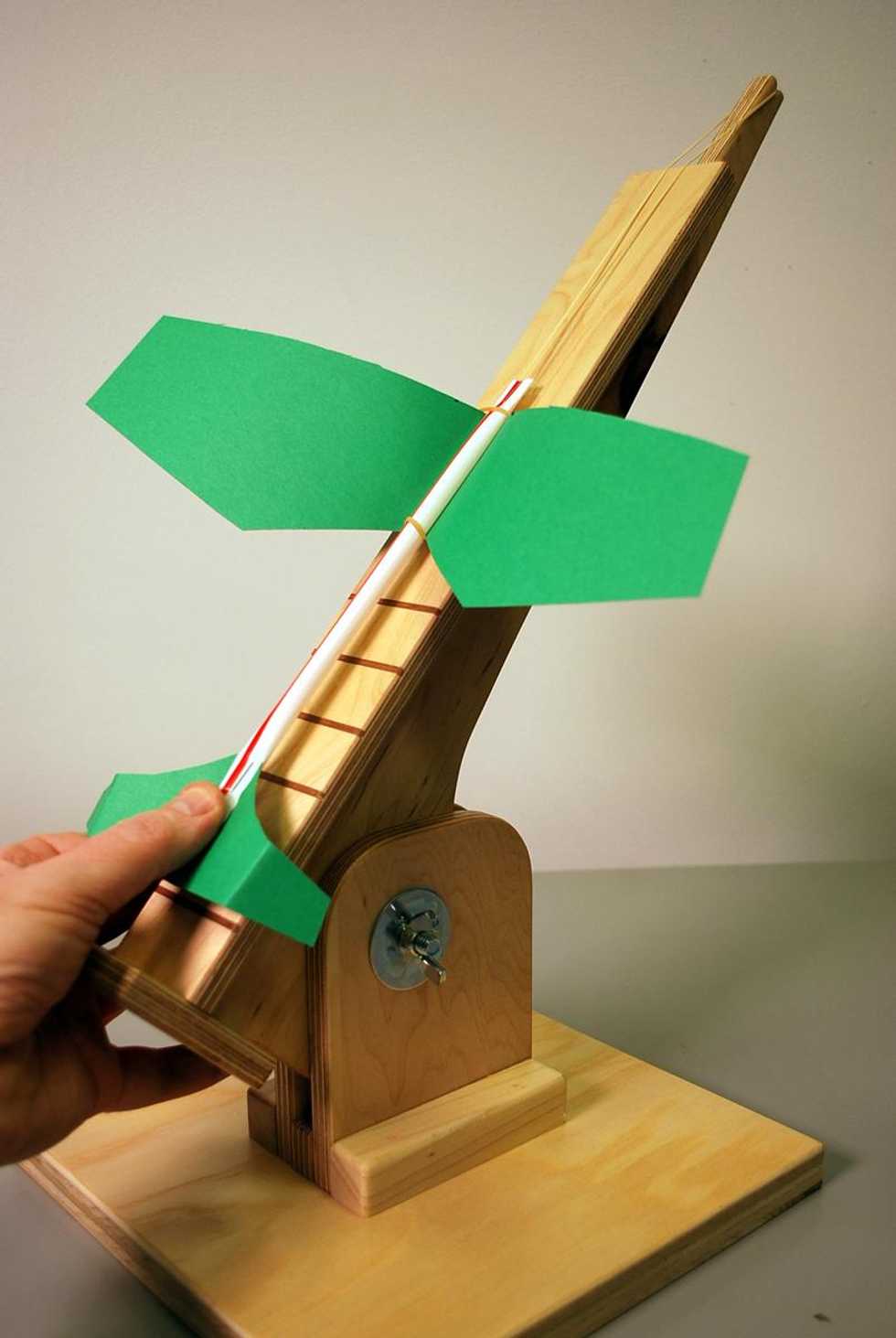 We build wooden launchers for using in our program (you can use a ruler or even your thumb). The launchers are clamped down at the corner of a table using quick-release clamps