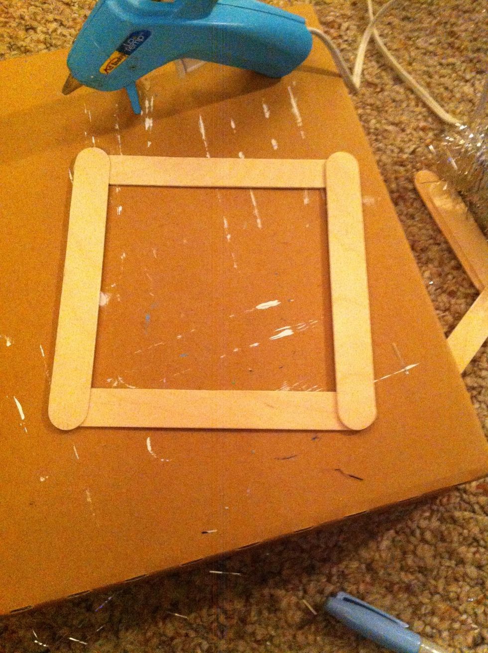 First things first, take your 10 popsicle sticks and use 4 to start building a frame for your sign.