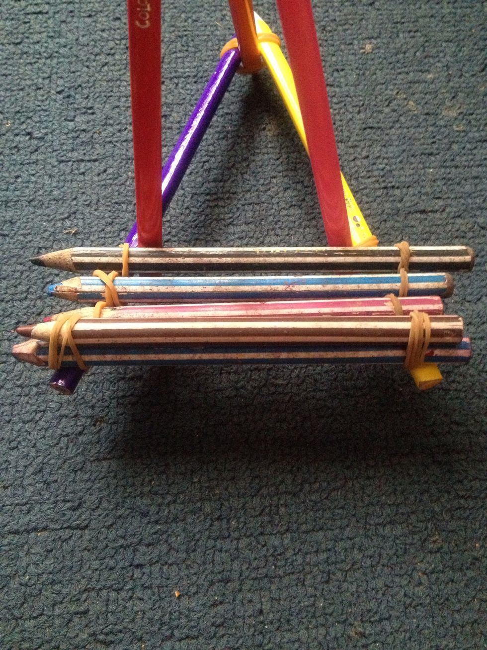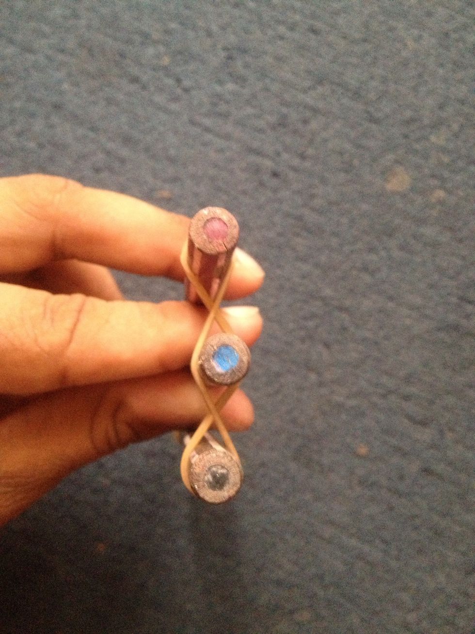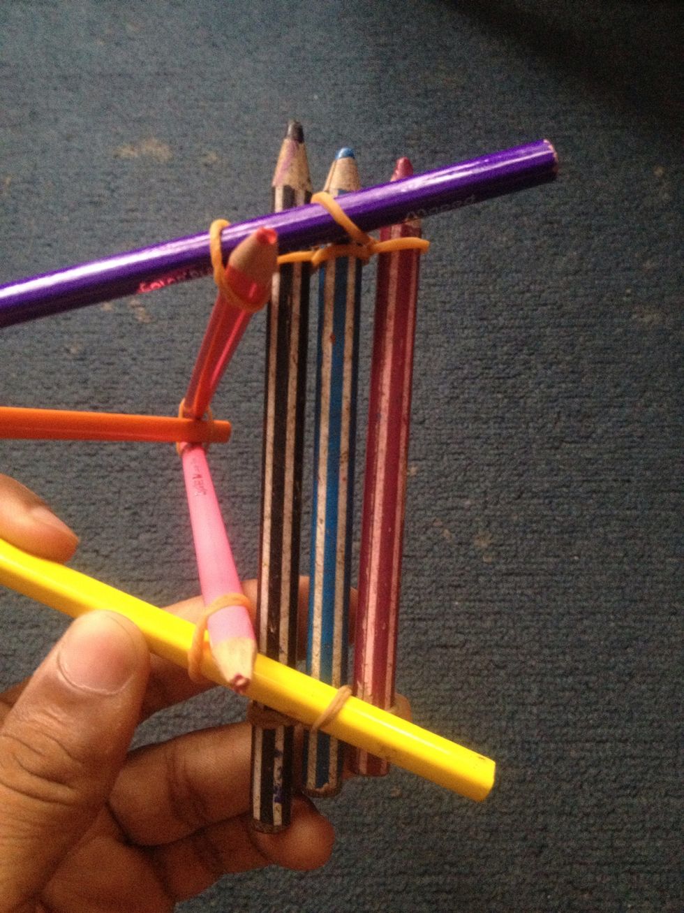 Get 10 pencils and 8 rubber bands .. 5 pencils are long pencils and others are small..