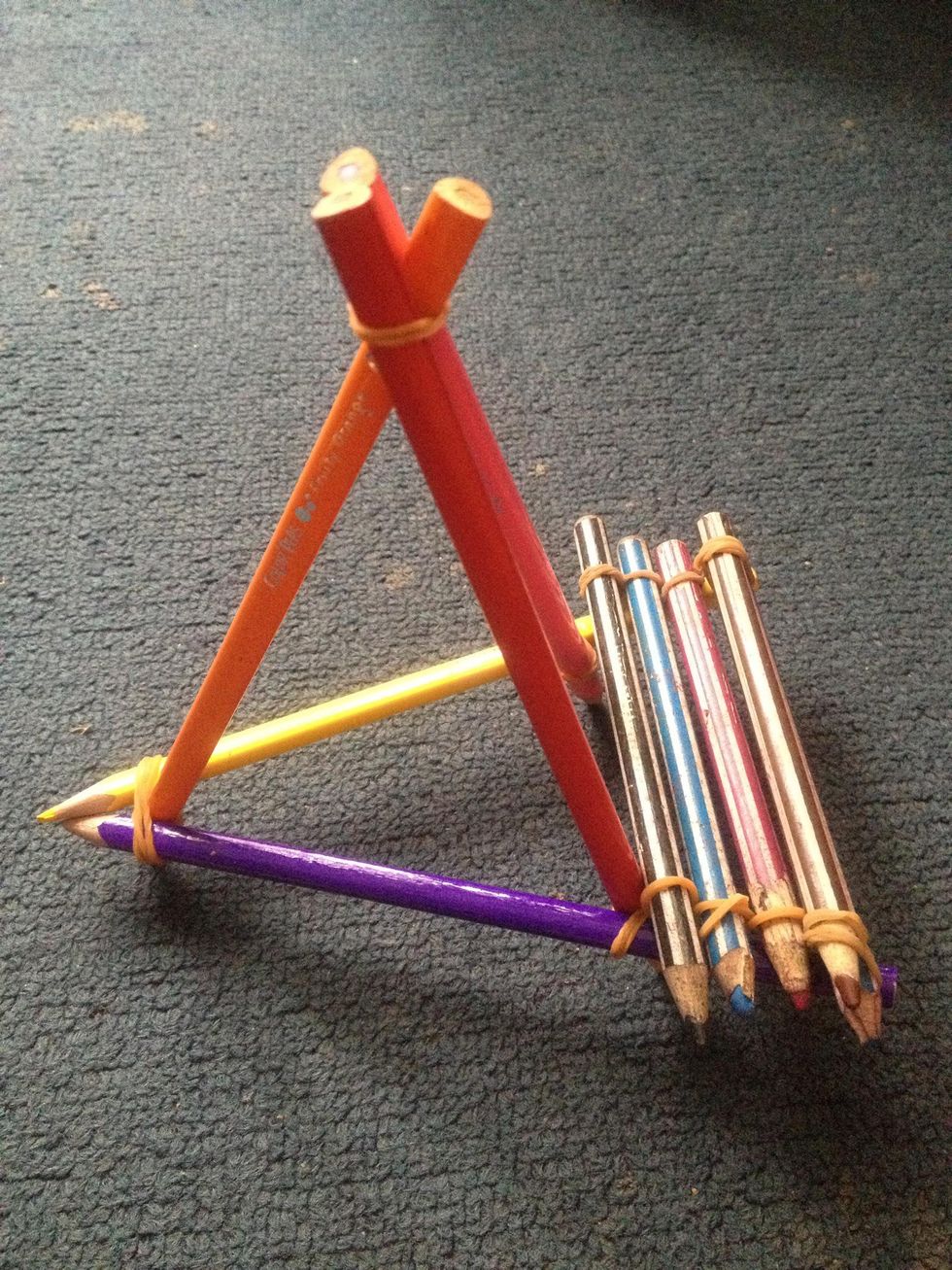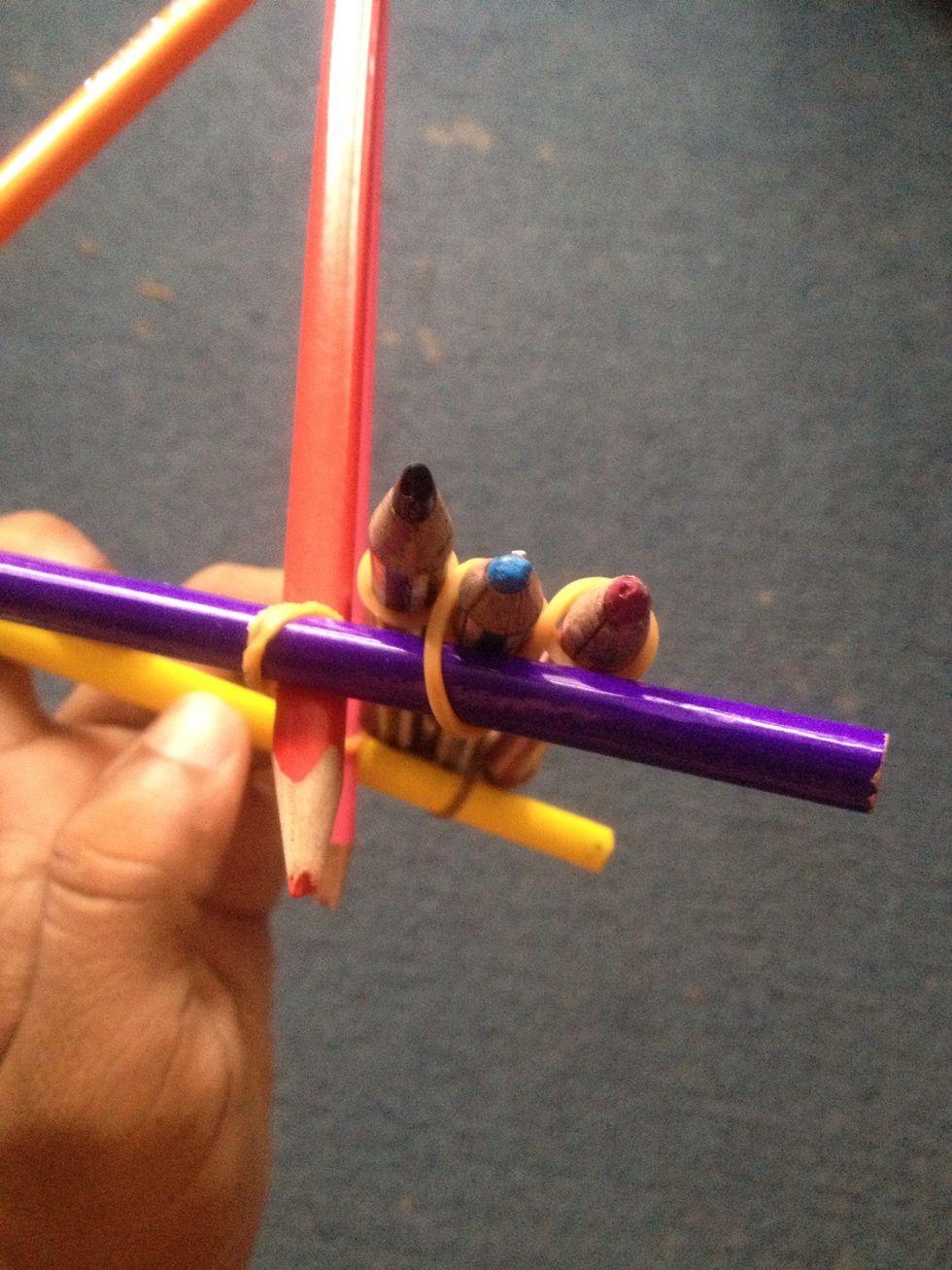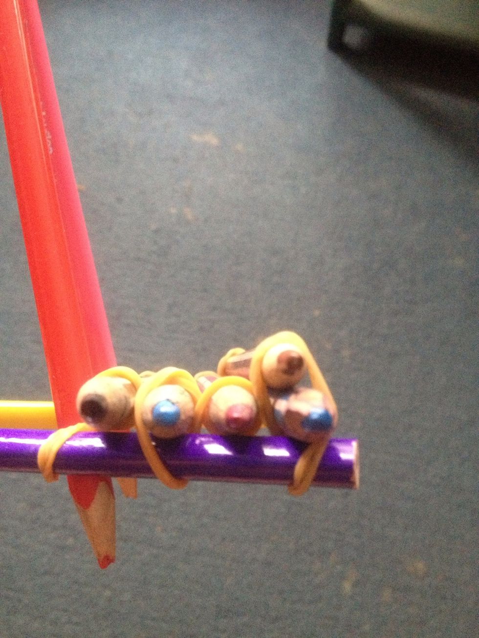 Get 10 pencils and 8 rubber bands .. 5 pencils are long pencils and others are small..