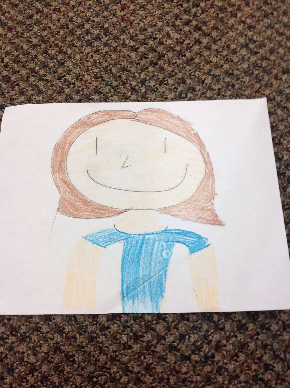 Finally,Draw a semi-circle on the piece of paper,Then draw a circle around the face and add some hair add a neck,clothes and hands.