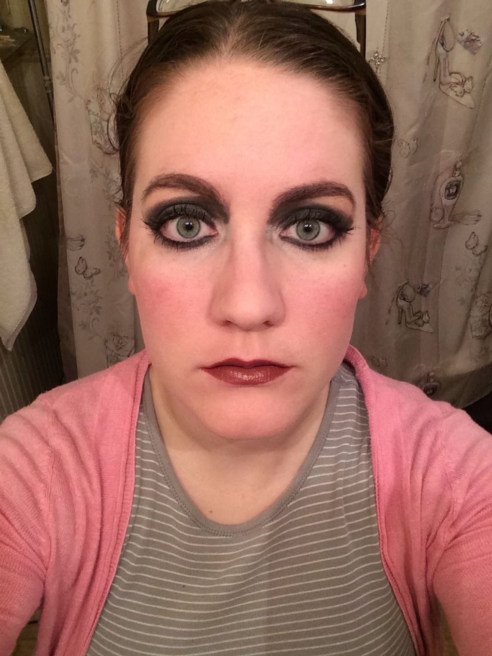 Finished look. Here you go, winter guard. With teased hair, this will look certified-crazy!