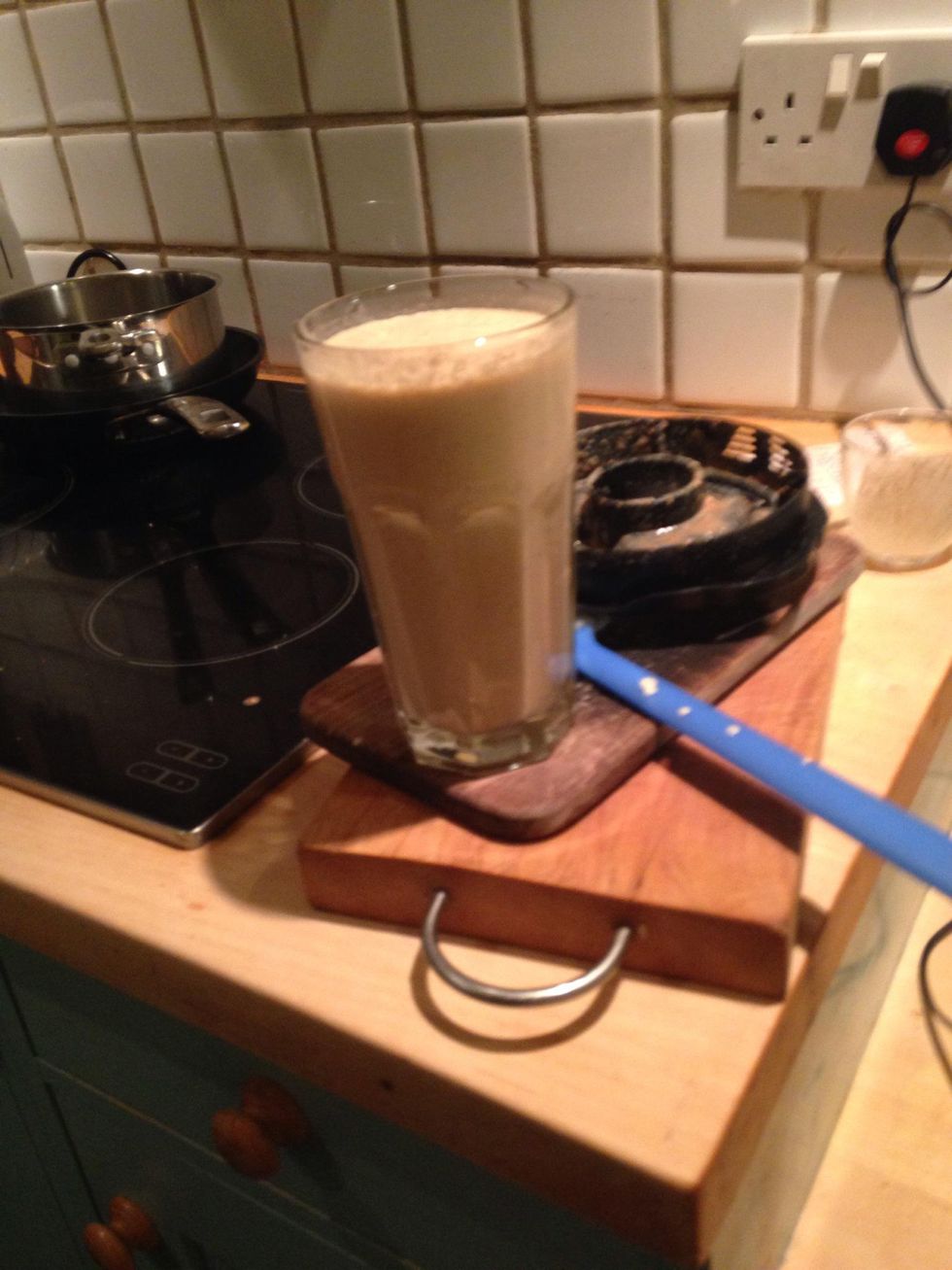 (2 bars makes it v strong)Dice up the snickersBlend with a bit of milkMilk and snickers blendAdd 3 large scoops of vanillaBlend with more milk until desired consistency is reached. I also added some more ice creamDelicious