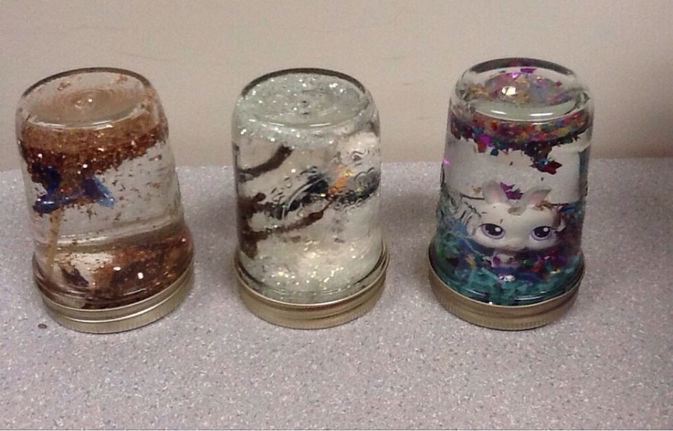 These are some of our finished Snow Globes (the glitter may change the colour of the water over time)