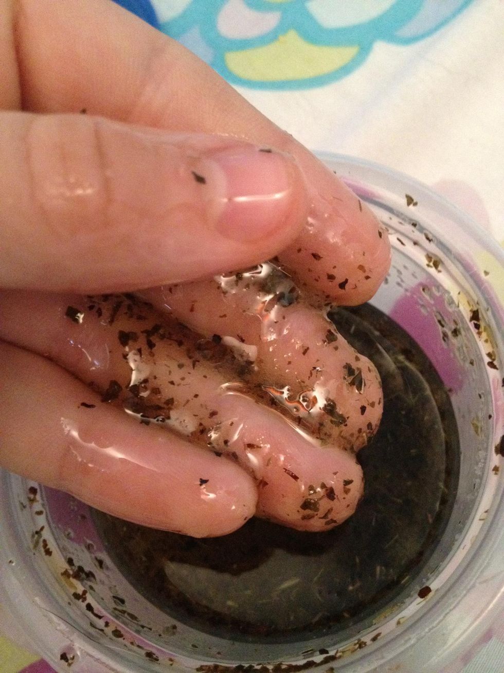 Add three spoonfuls of olive oil and mix well.