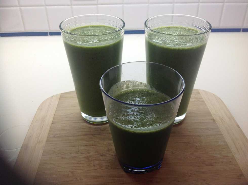 Blend it all up until you see very few dark green bits left. Be patient!