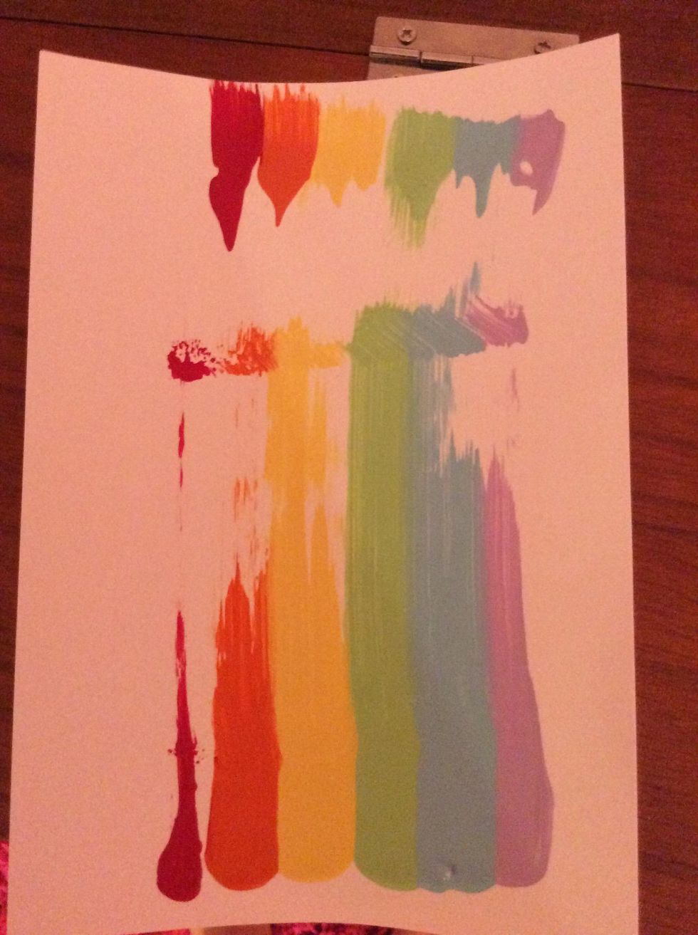 Get a big sponge brush and paint.Add LITTLE dots to the brush.Spread the paint onto the piece of paper.Now you are done!☺️
