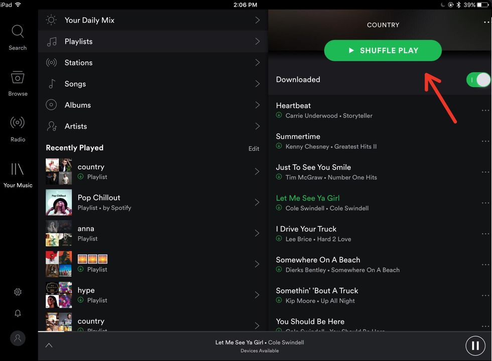 Your playlist will show up and you can click "shuffle play" and jam away.