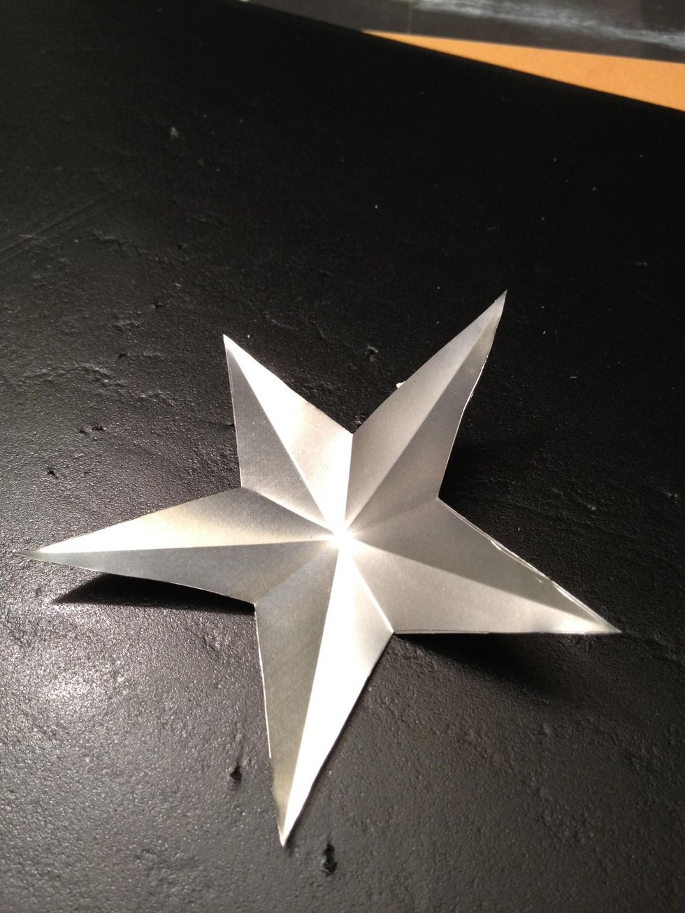 Put your paper star on top of a piece of the can You now have. Mark the can piece with a marker, and cut out the star