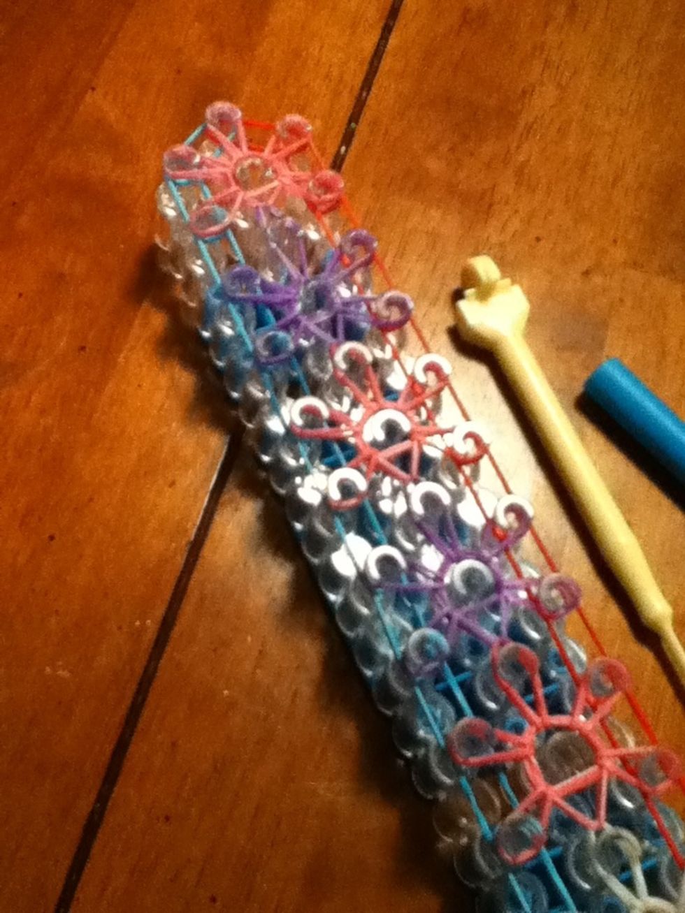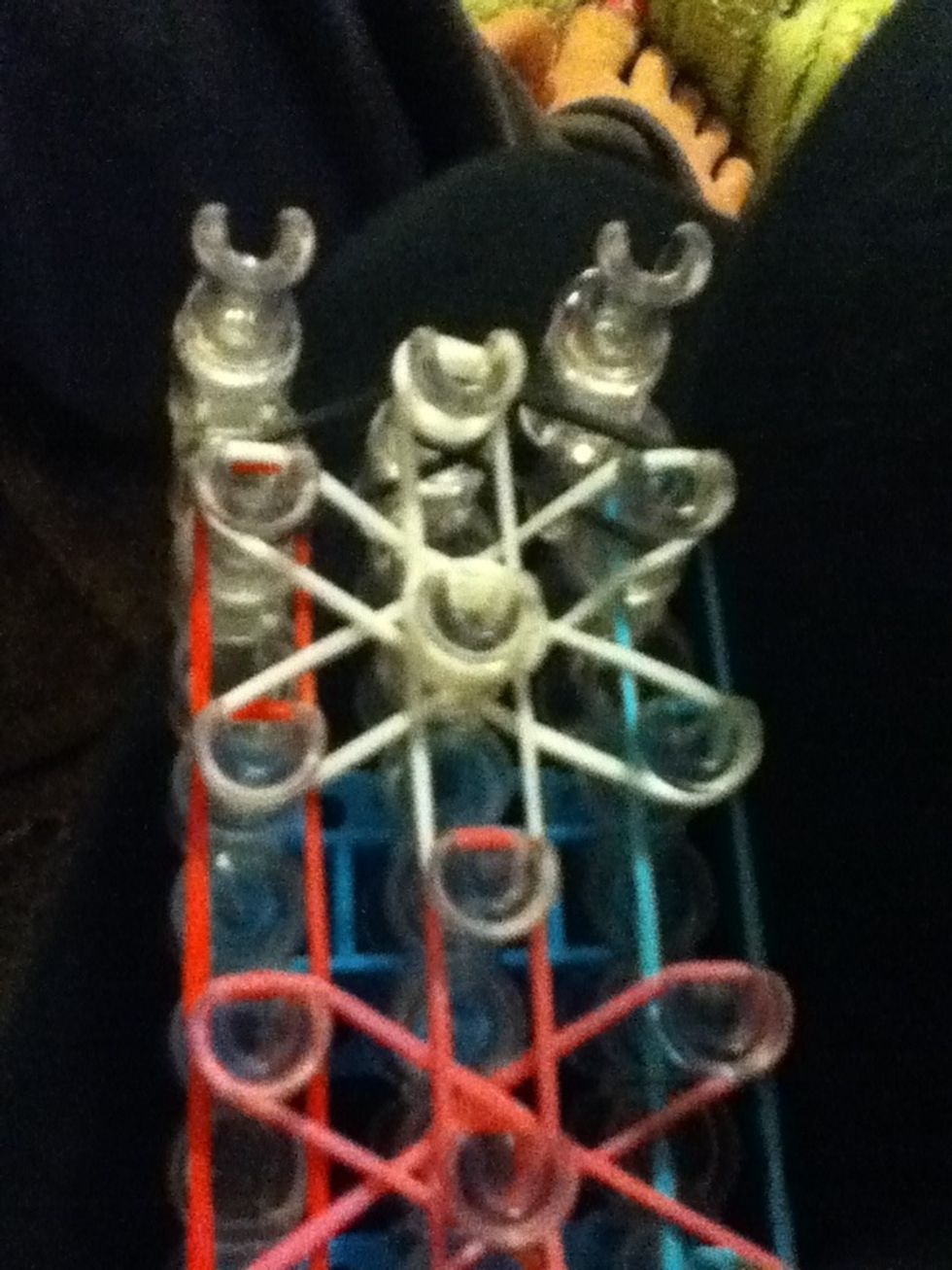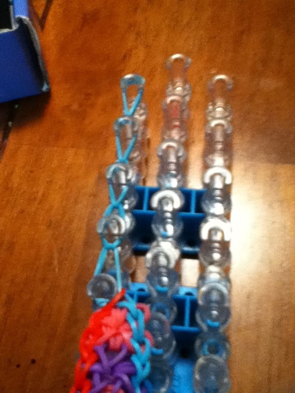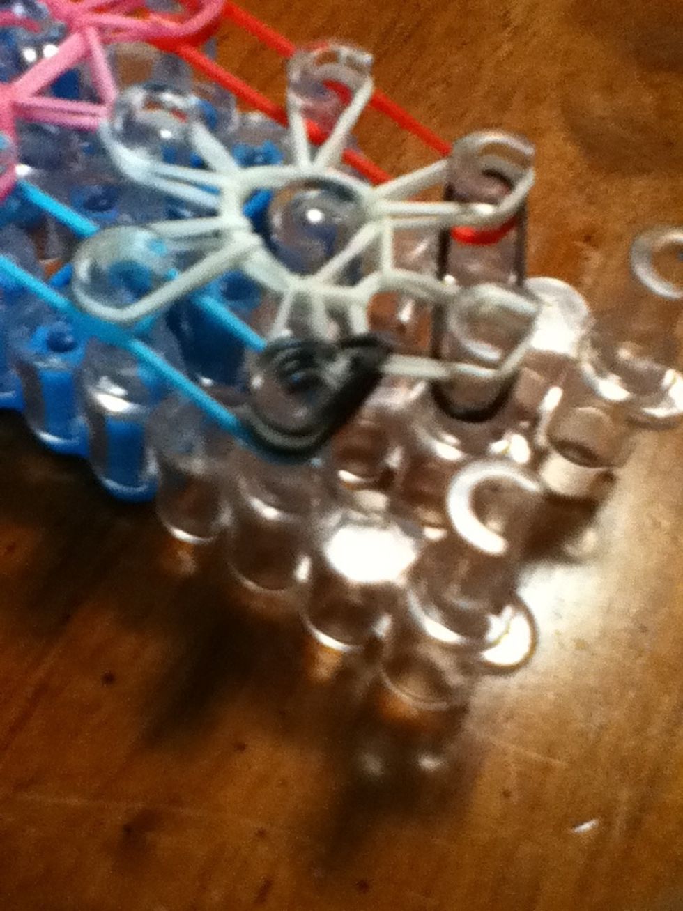 Now on the right side put a pink band on the side pegs.and u half to put it in the side pegs