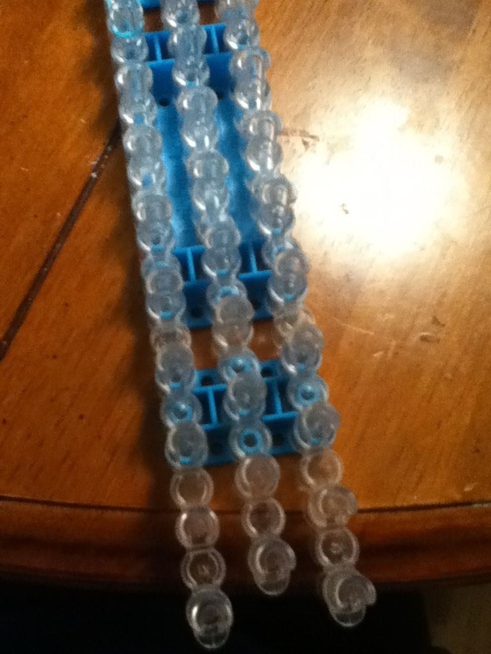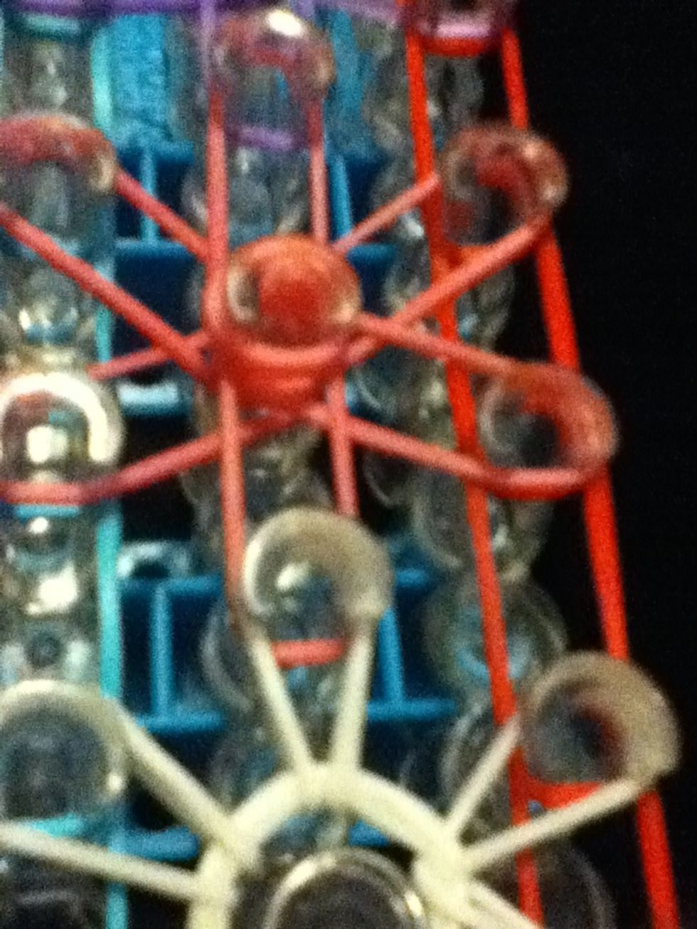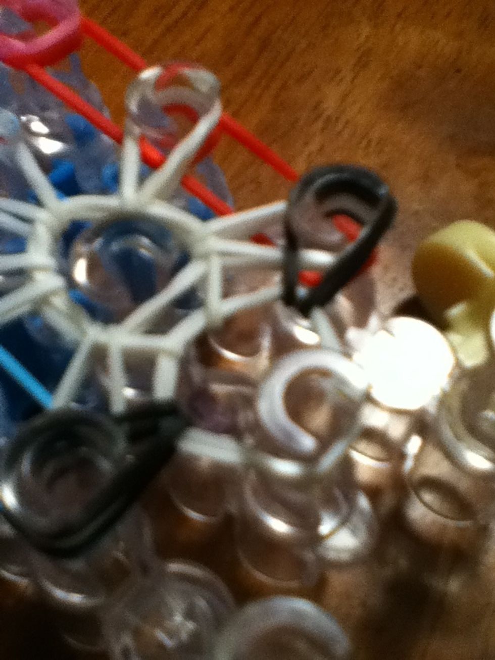 Now on the right side put a pink band on the side pegs.and u half to put it in the side pegs
