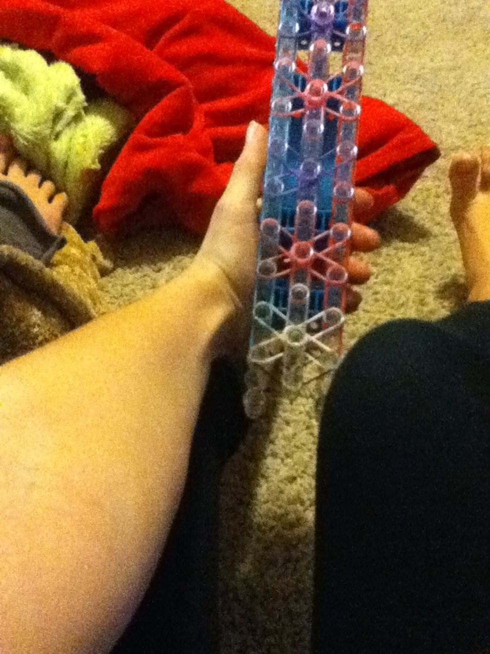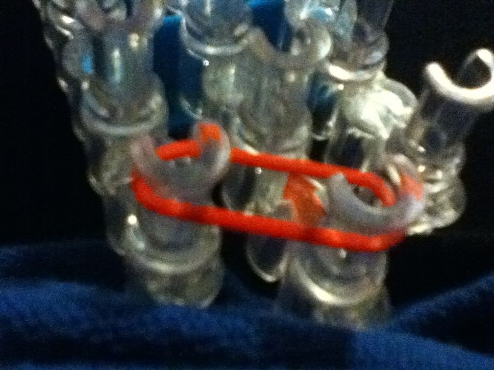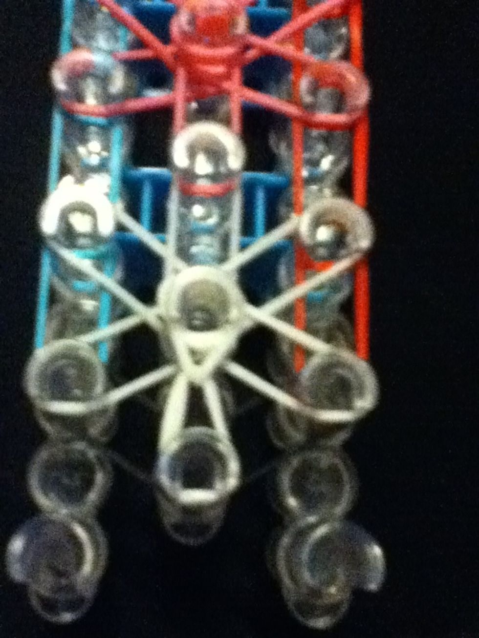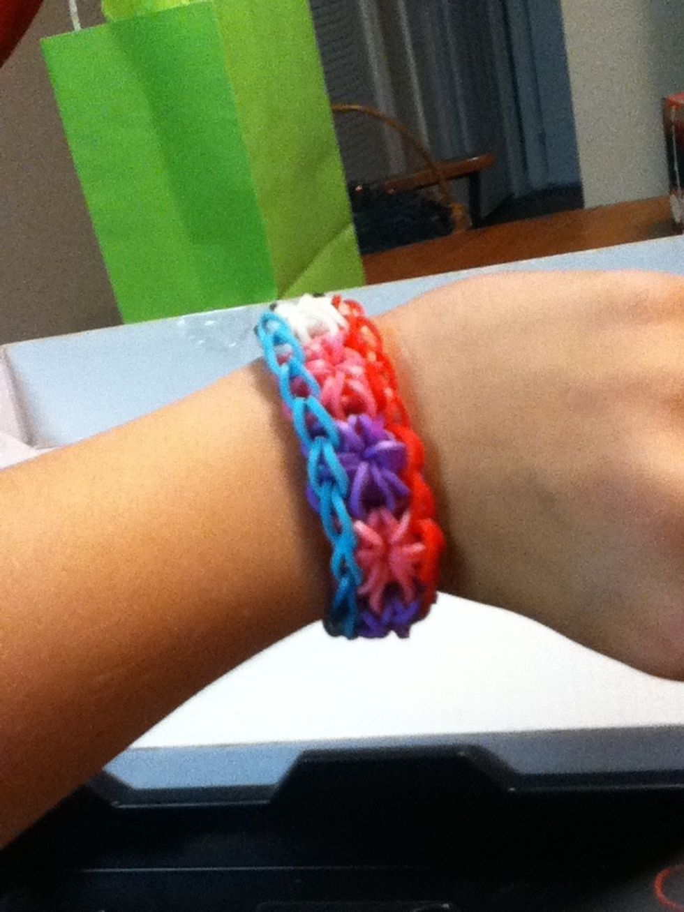 Now on the right side put a pink band on the side pegs.and u half to put it in the side pegs