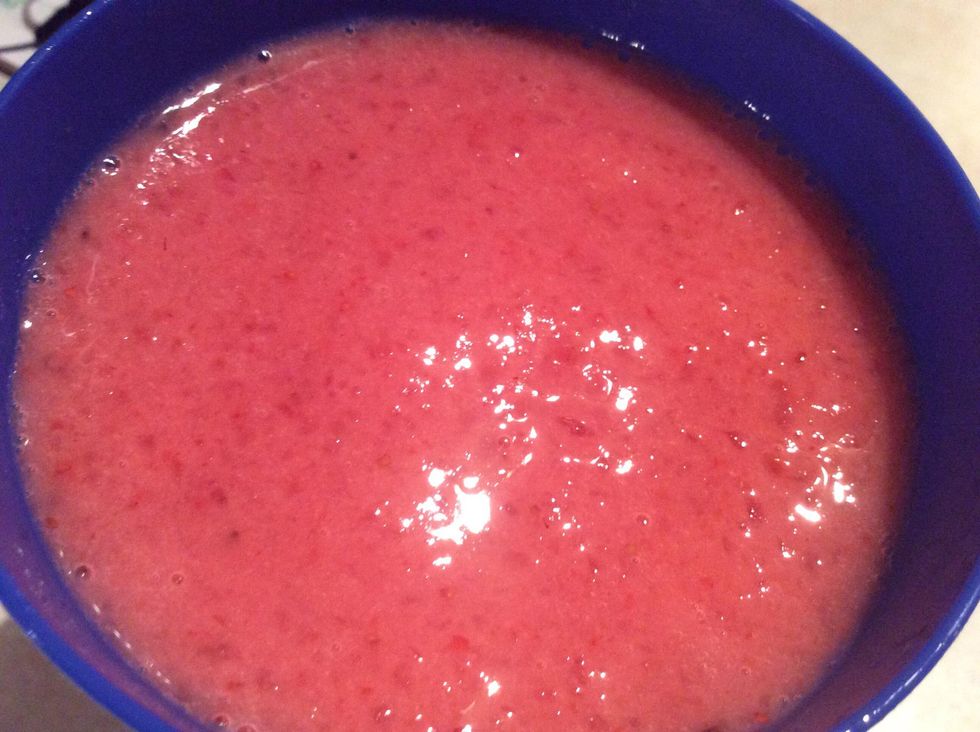 Add 4 cups of iceAdd 1 1/2 of bananasAdd your strawberriesAdd milkMix well Intel smoothPour in to large cup