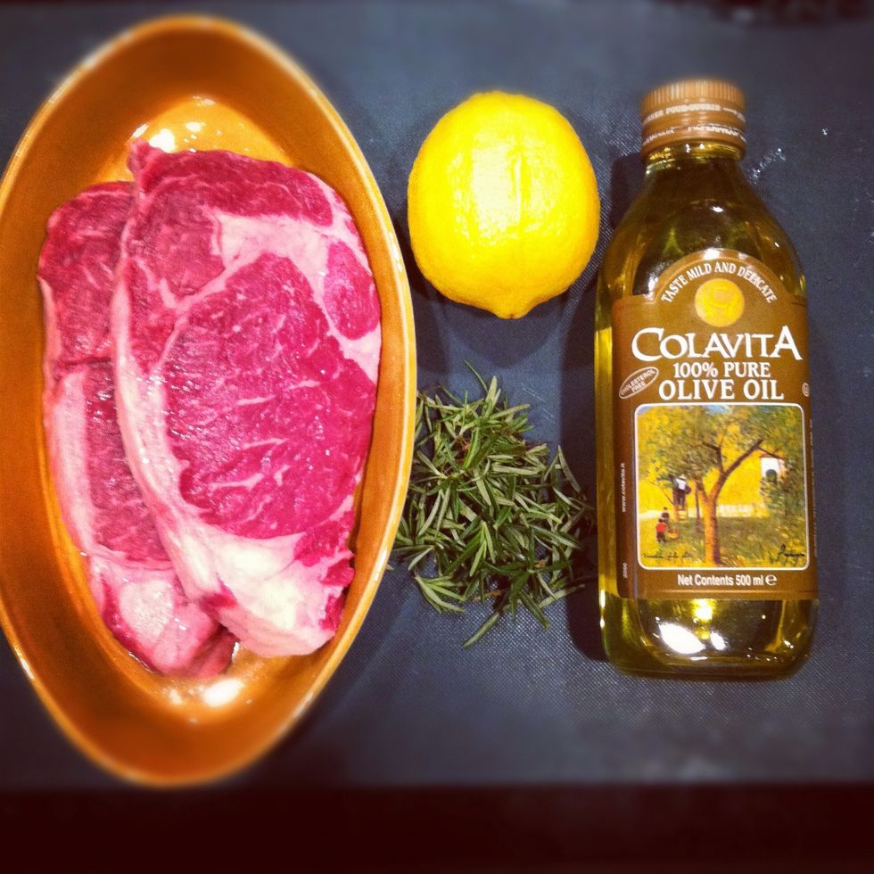 Marinate steak with zest of lemon rosemary a squeeze of lemon juice and olive oil