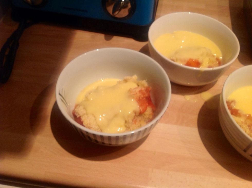 I always put any left over crumble mix into a air tight coffee jar. It'll keep for a few days and you can make another crumble later on :)
