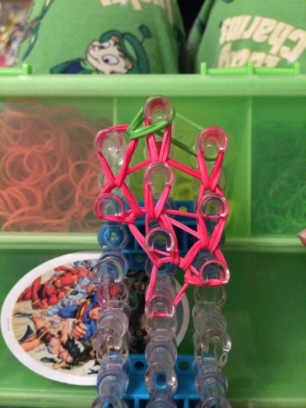 This will create a slip knot. The is what keeps your charm together. Holding all the rubber bands in place. Now it's time to pull it off the loom 😀