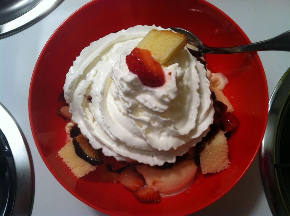 If you feel like being fancy, garnish with a pound cake cube and bit of strawberry and then grab a spoon and DIG IN!!! I hope you enjoy it! 😘 We did 😉