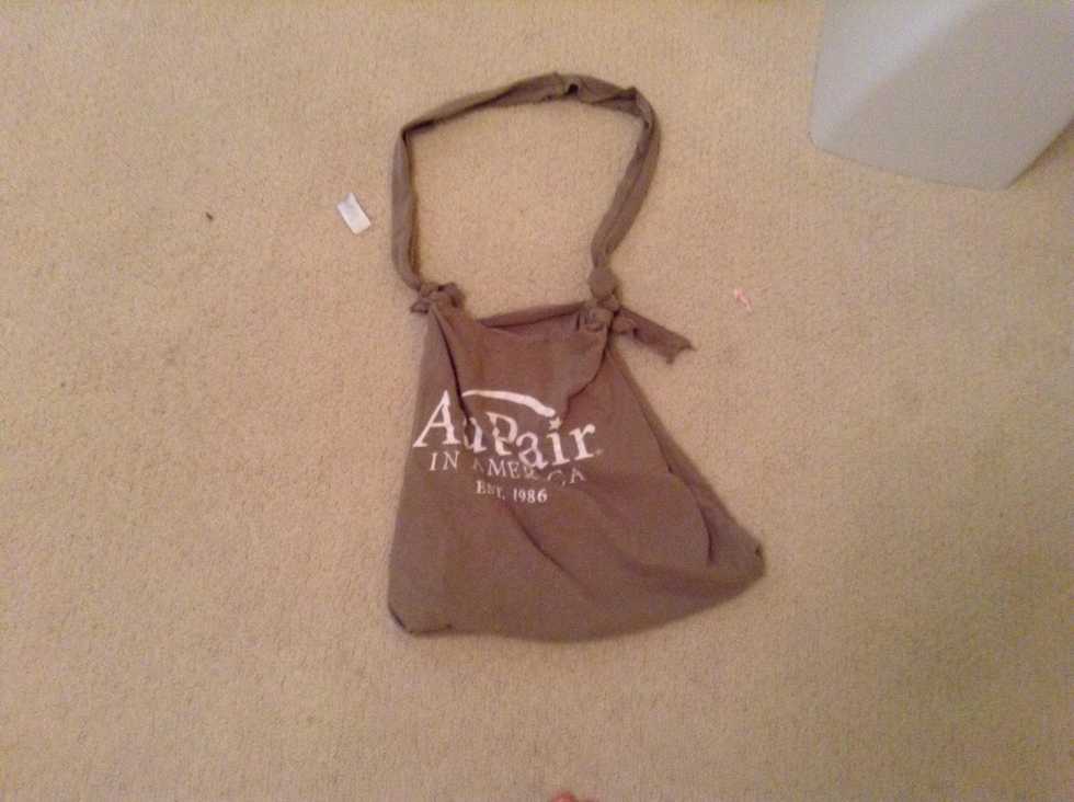 Now, turn it right side out and pick it up by the pieces of sleeve that is still there. If you want, you can add a handle with fabric scraps or just leave it the way it is.
