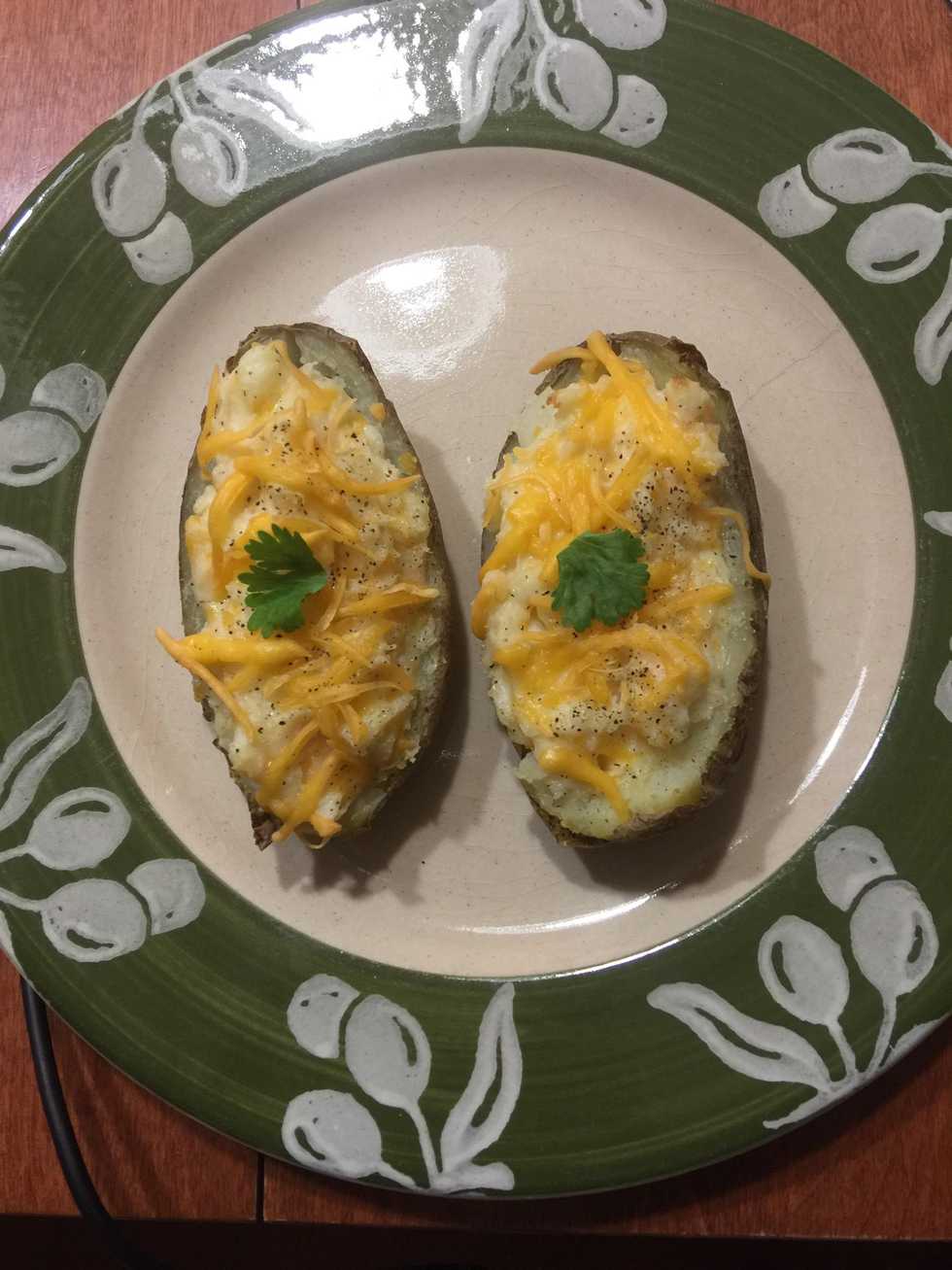 Scoop out the potato and place into a separate bowl