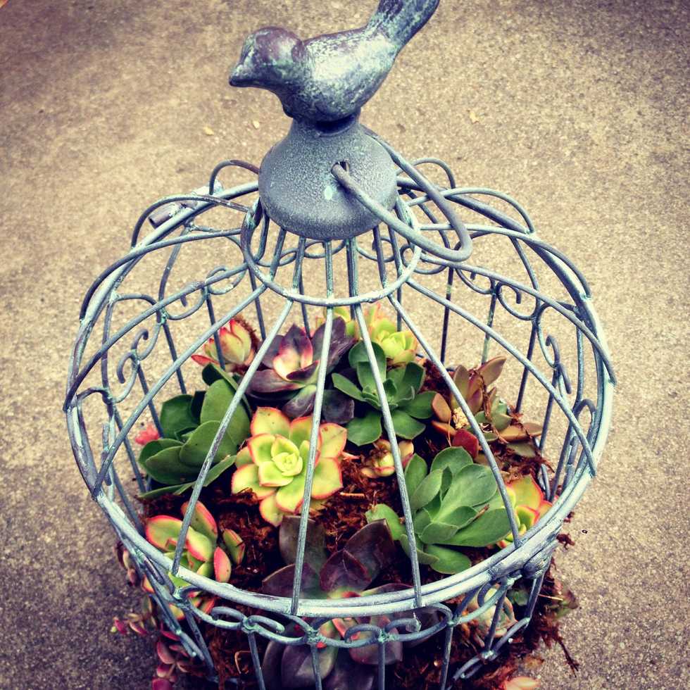 I used a kiwi aeonium as the focal point at the door of the birdcage.