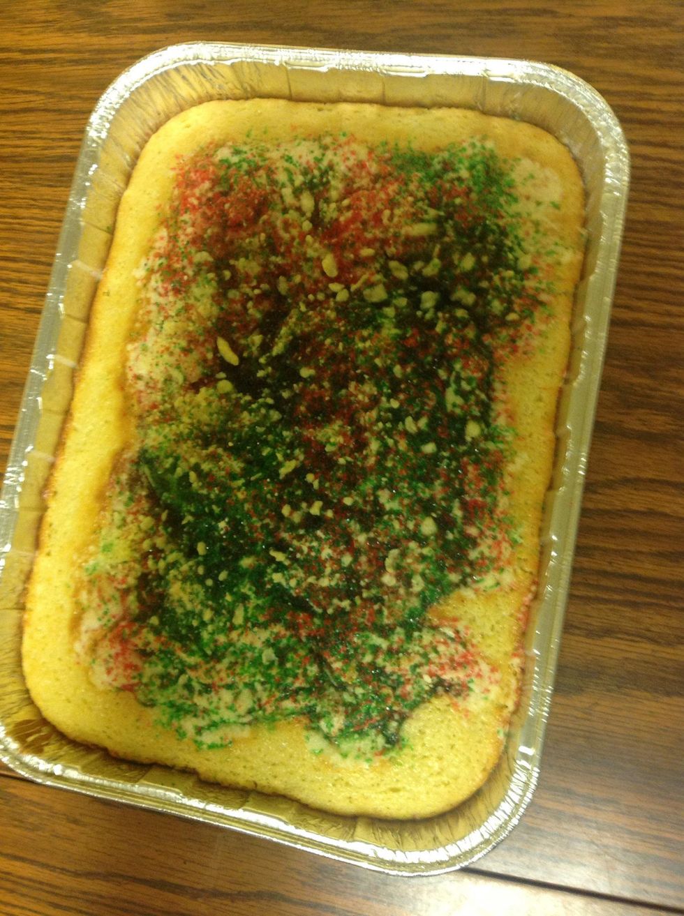 3 cups of flour 2 cups of sugar 3/4 cup of stick butter 1 tsp of baking soda 2 eggs 1 1/2 cups of buttermilk 1 tsp of vanilla Dash of salt Wood Spoon Greased 9 x 13Pan Toothpick Oven