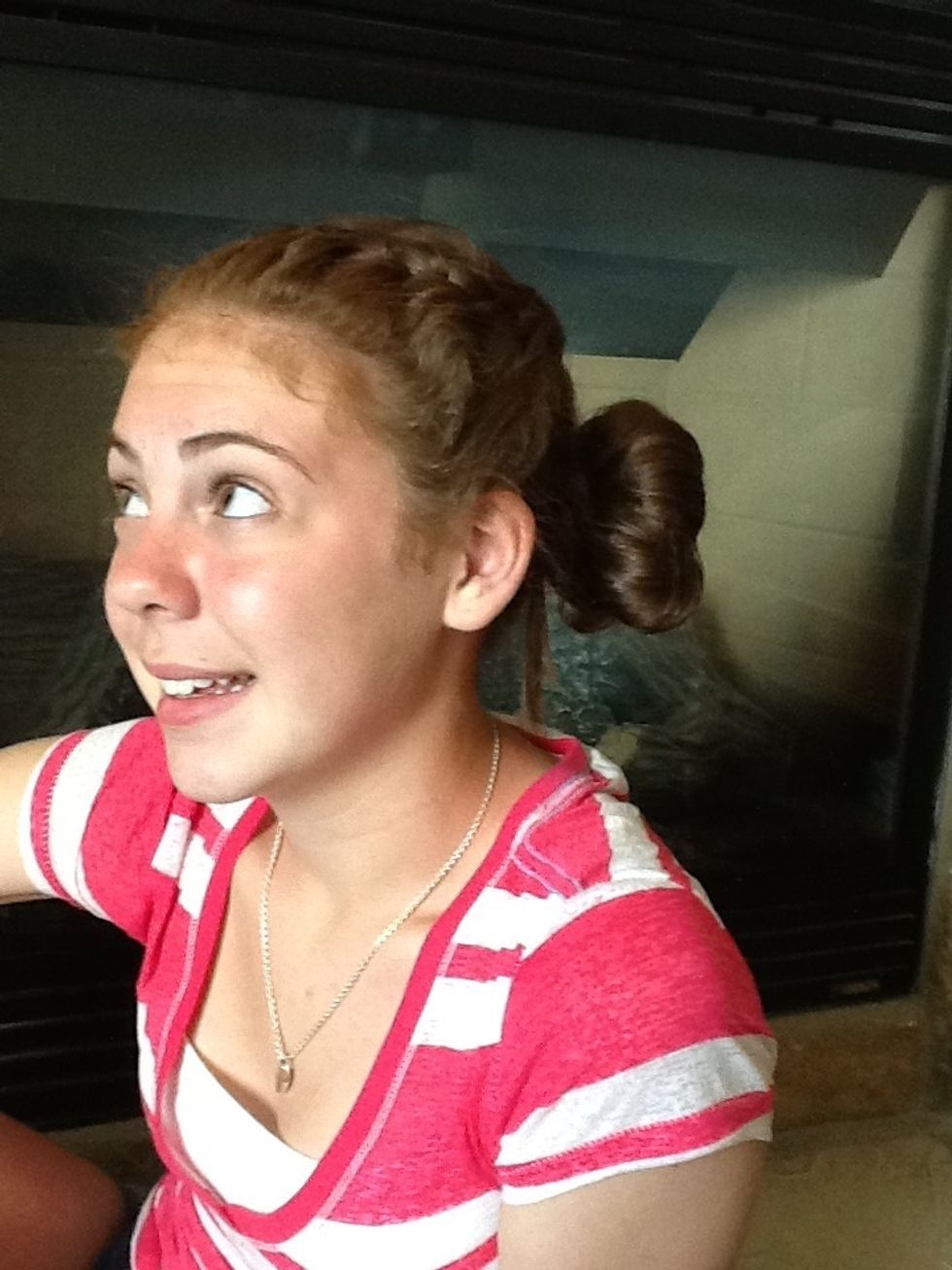 Section your hair into two chunks. Then tie the bigger chunk into a pony