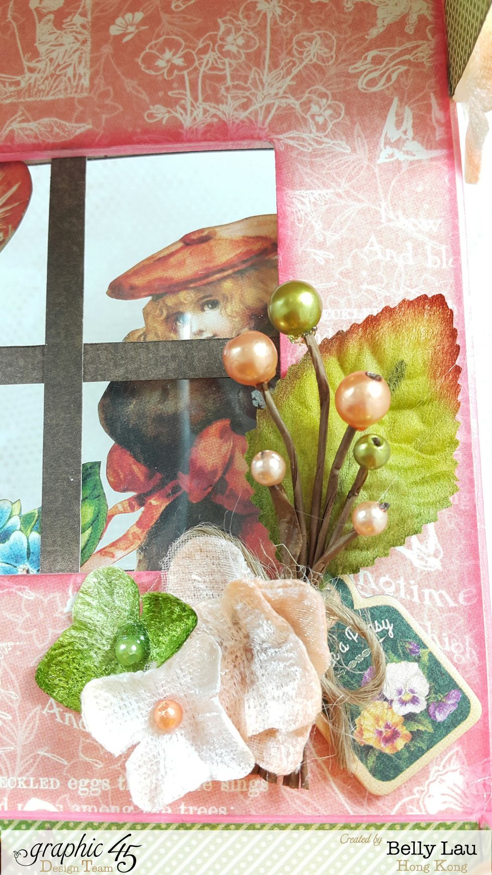 Before adhering the back sheet, add some fussy cut-outs onto the window, I used foam tape on a few of them.
