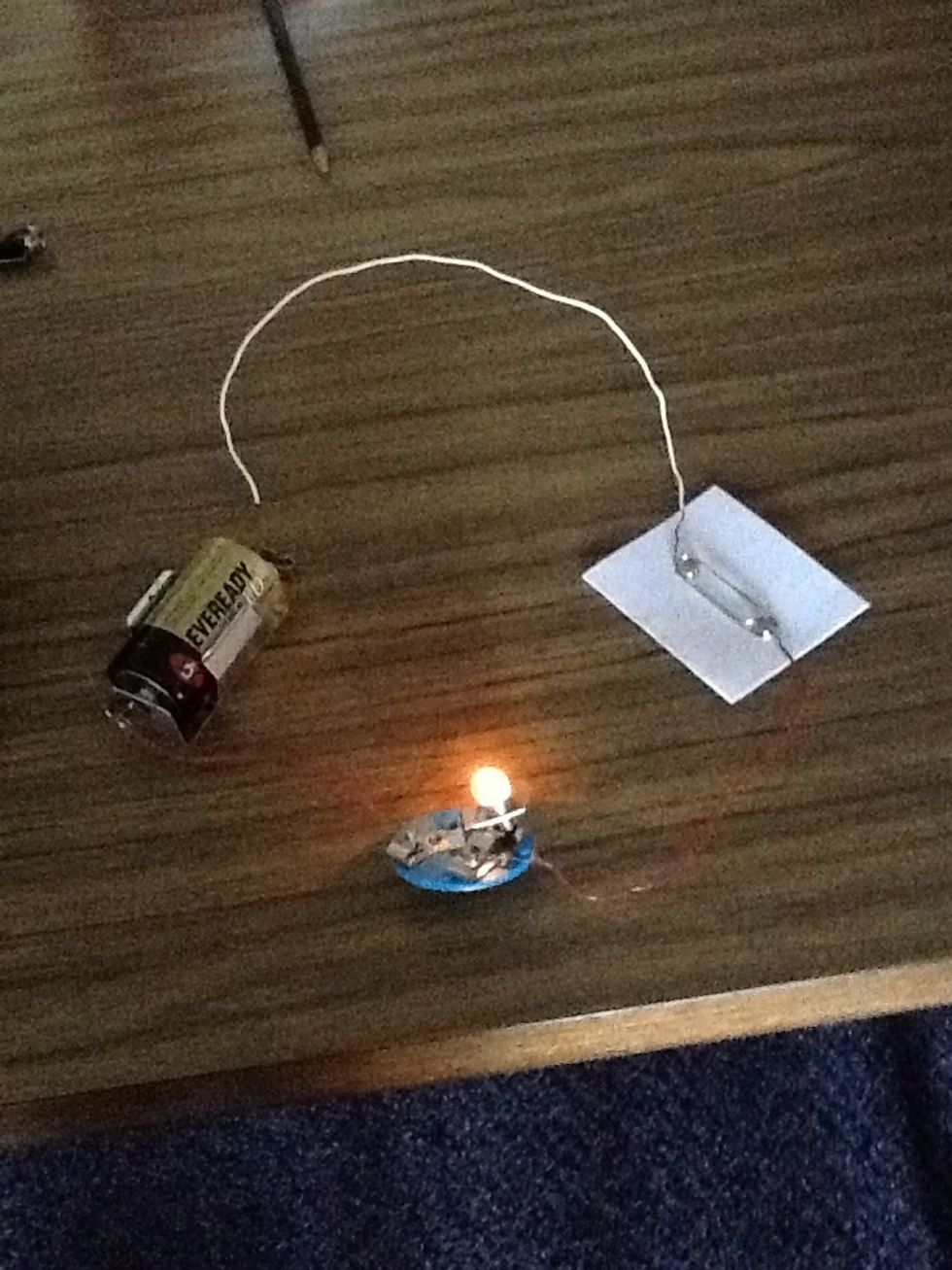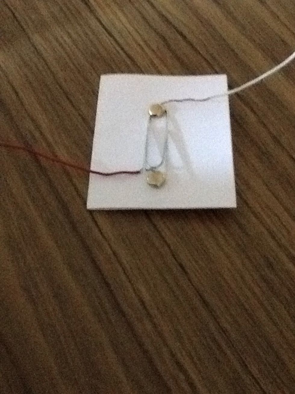 Connect the wires as shown,winding them around the paper fasteners once or twice.