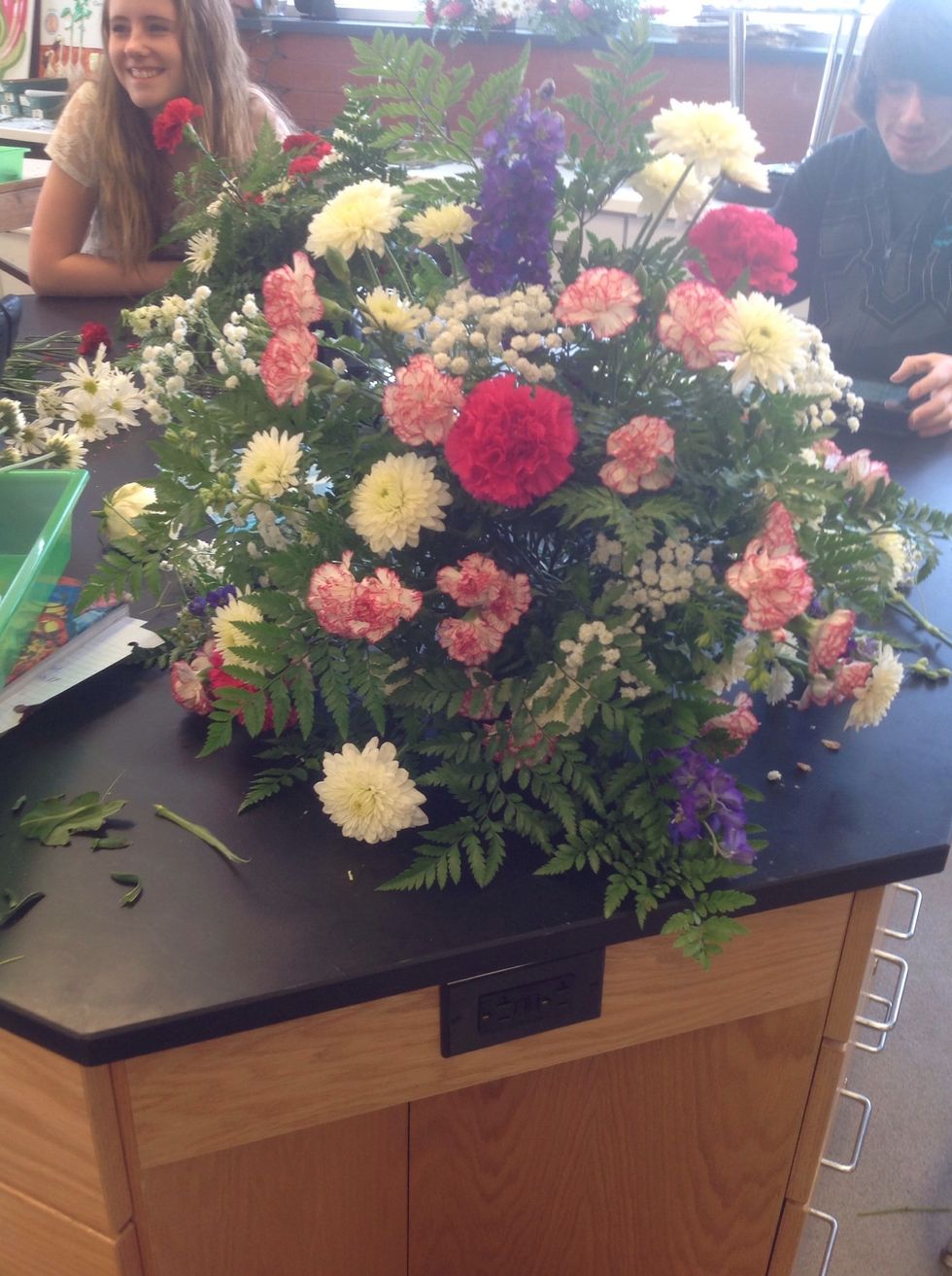 Create a Step down line with standard carnations and start filling in with mums