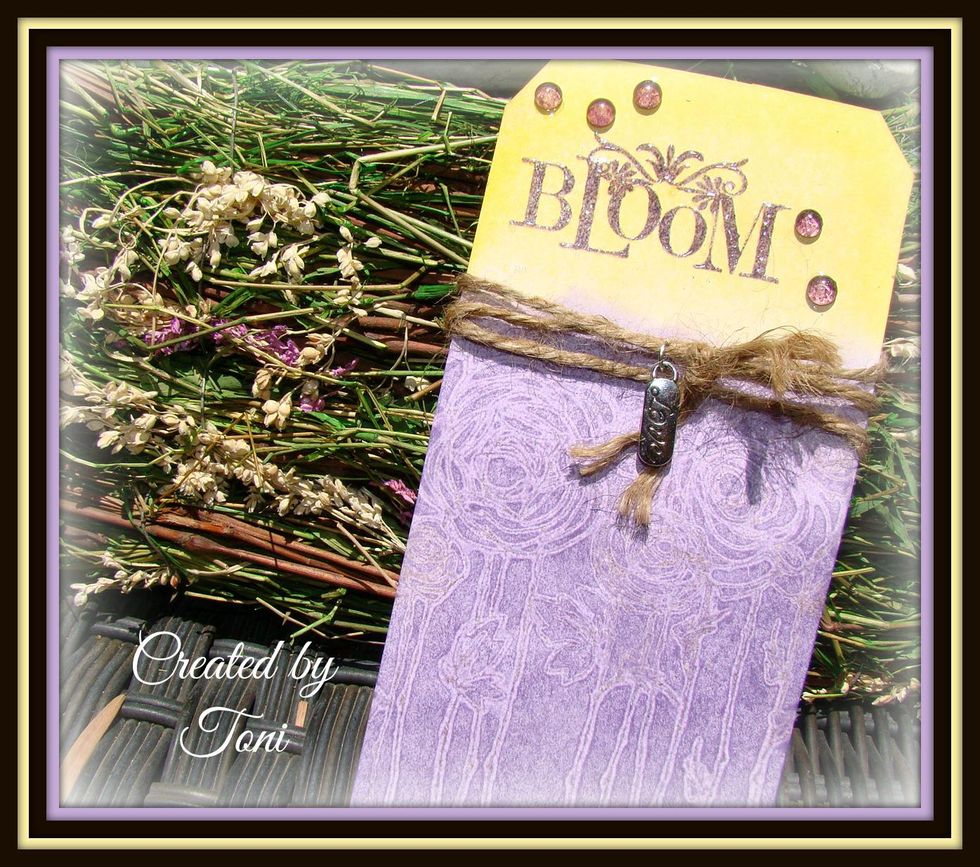 From here you can use your creative imagination to embellish your tag or card. I chose jute and wrapped it around 3 times, attached a small charm "Love" and tied to finish off.
