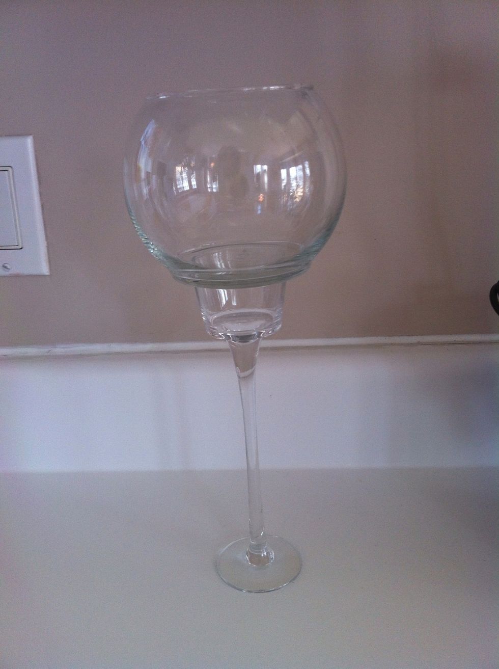 First purchase a small glass fish bowl vase and a tall glass candle holder ( I got mine at a local dollar store).