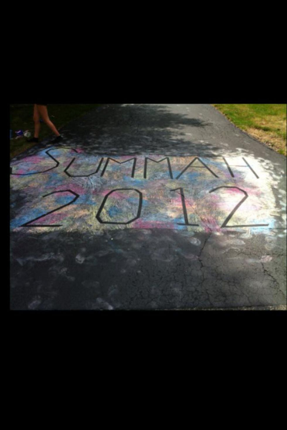First, use the masking tape to write, or draw, whatever you want to be written on your driveway.
