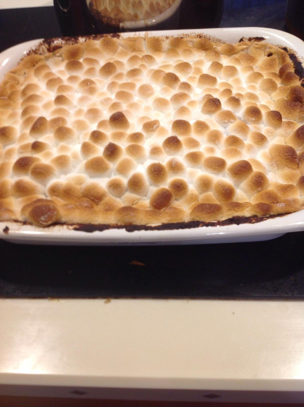 Take the dish out of the oven and pour as many marshmallows as you want on the top of the potatoes. Put the dish back in the oven for 8 minutes or until the marshmallows look golden brown.
