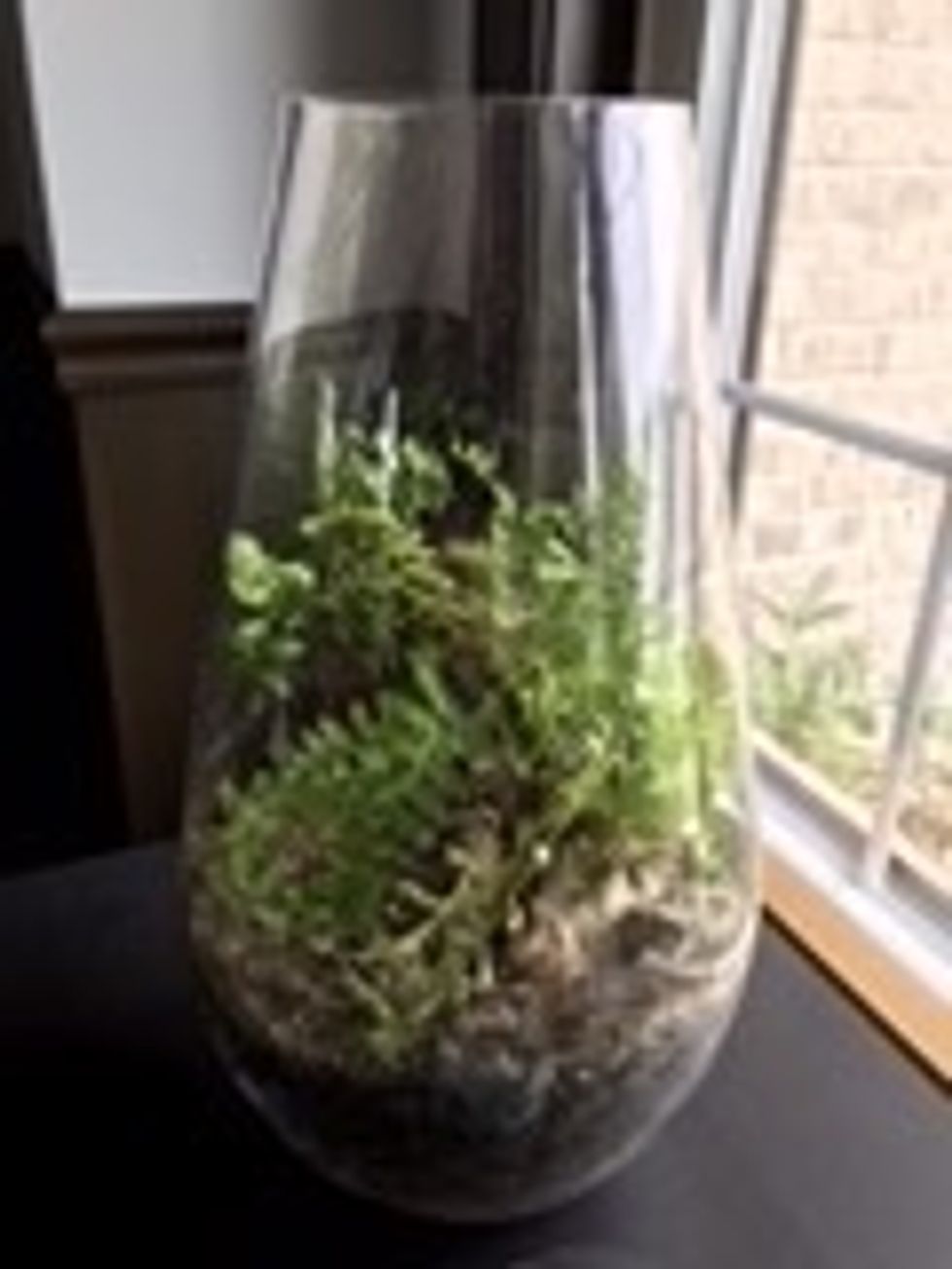 Insert plants and water lightly. Don't put in direct light as glass will magnify and hurt plants.