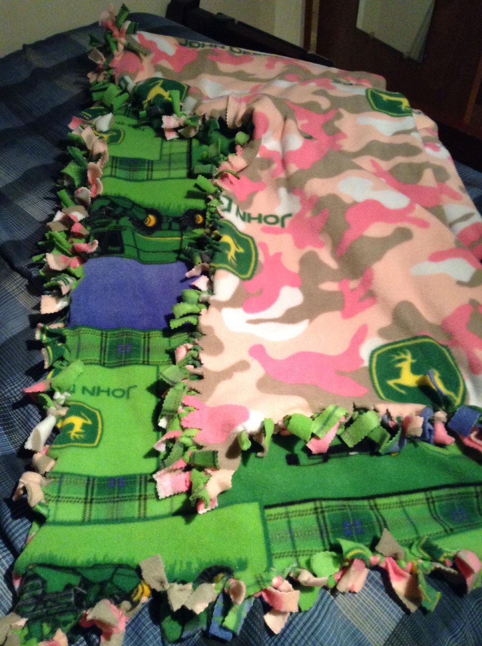 When your done, the two pieces of fleece stick together to make one blanket. Then your done. Enjoy!