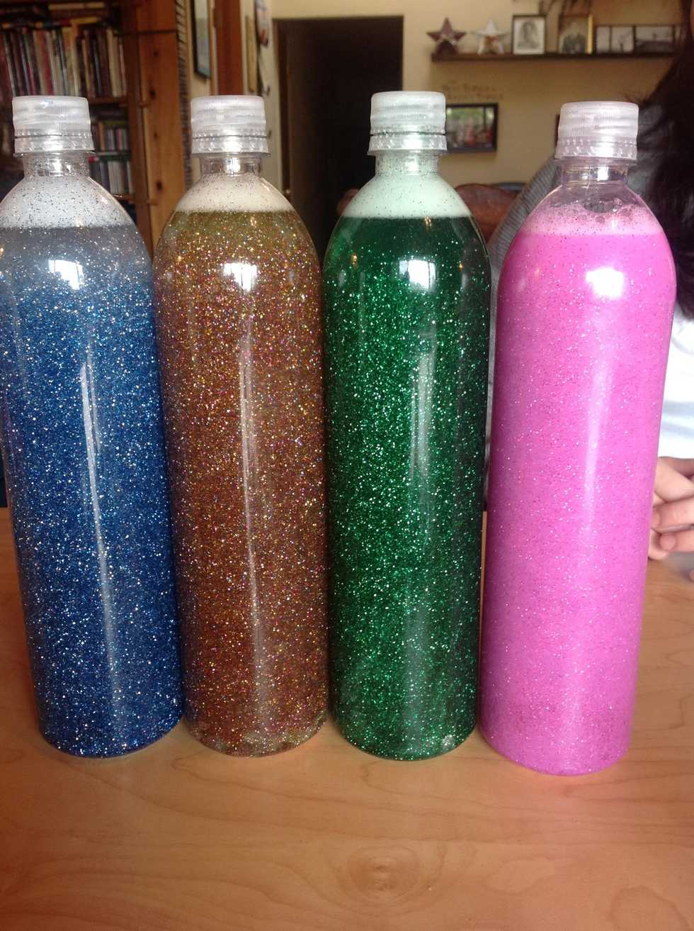 Fill bottle 3/4 with hot water. (Hot water will help glitter glue to mix)