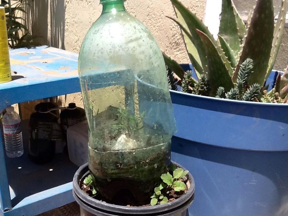 You will need a 2 litter soda bottle, kitchen shears, box cutter, and top soil.