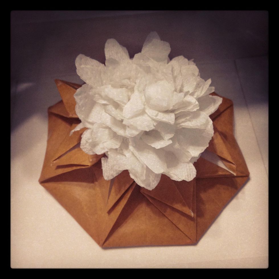 Repeat for the next two pieces of tissue paper. This is the finished third paper, which means there must be a total of 6 layers of petals on this.