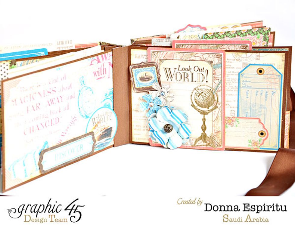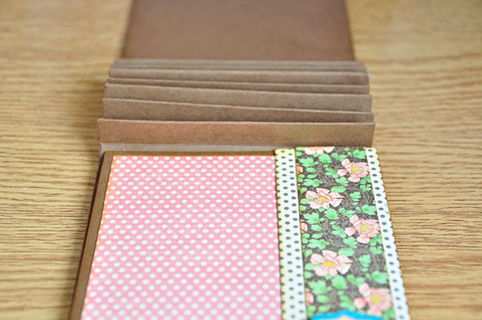 Cut 2 pcs of 5 3/4 x 3 3/4 patterned papers for the covers (front and back - outside covers). And 2 pcs of 4x6 patterned papers for the inside of the covers.