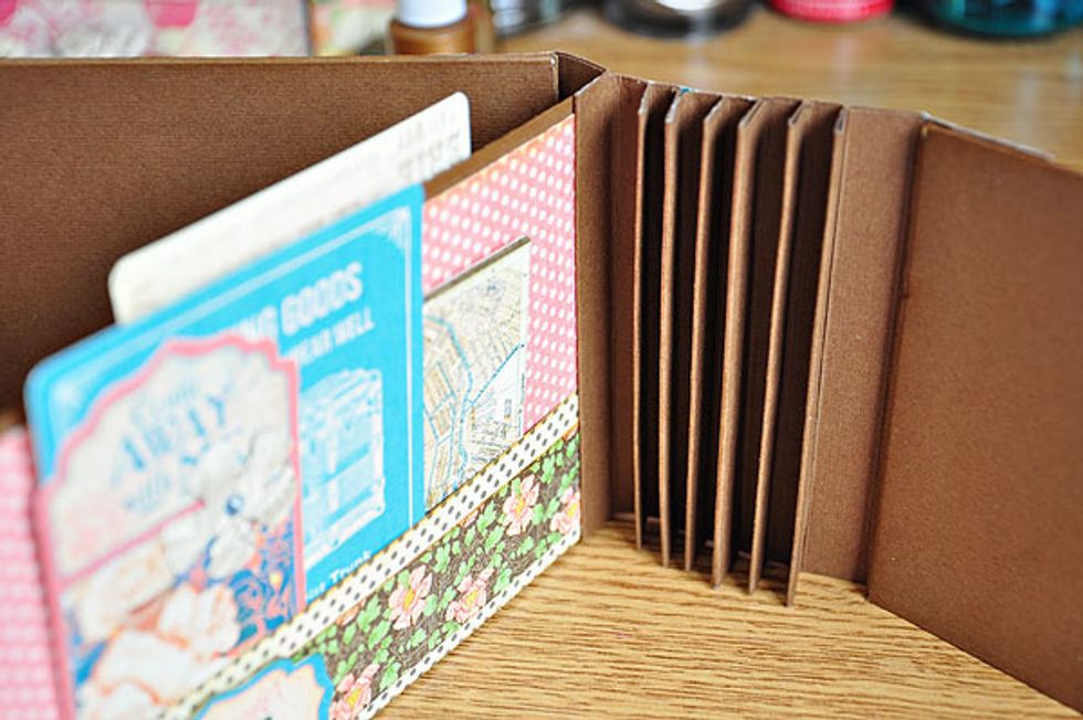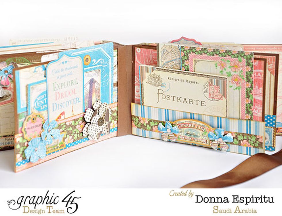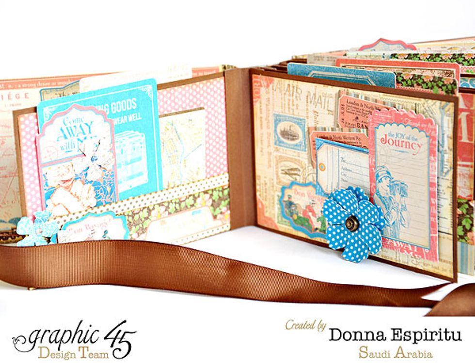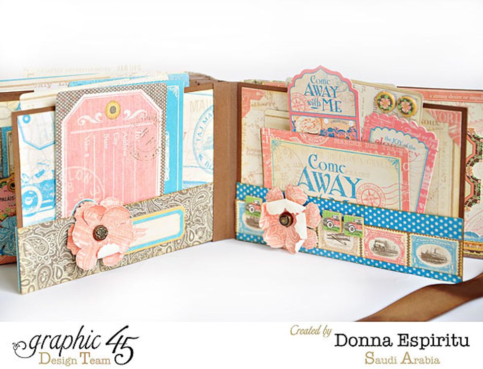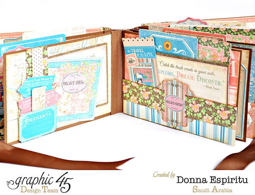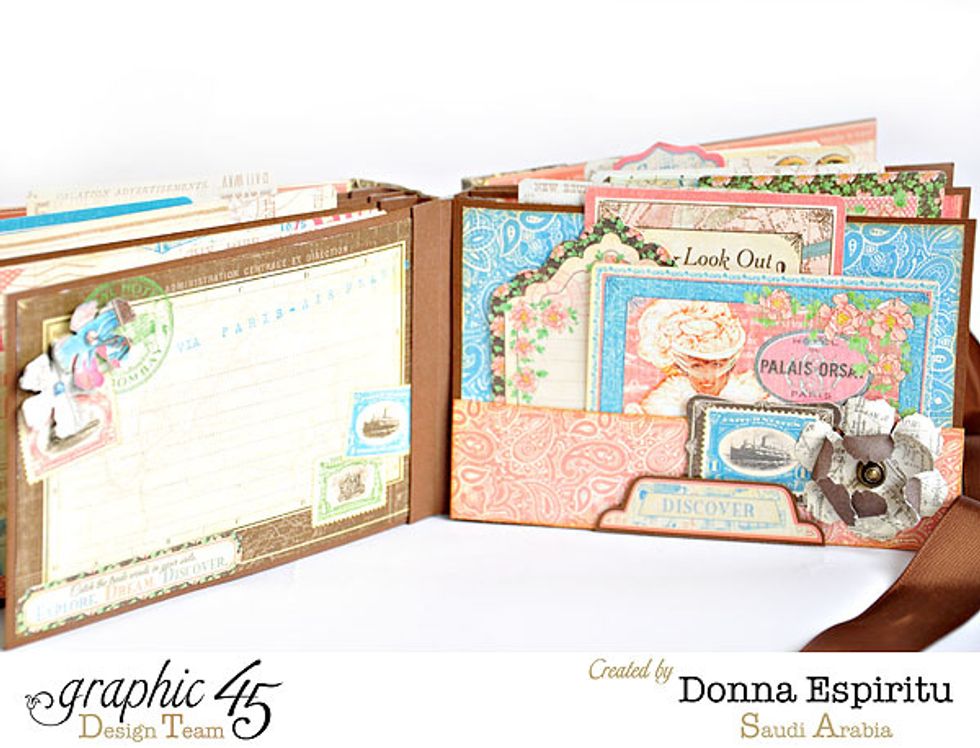 Time to assemble the pages. My preference is to design the pockets first before adhering to the binding. Just make sure to strategically place the bulky embellishments in each page.