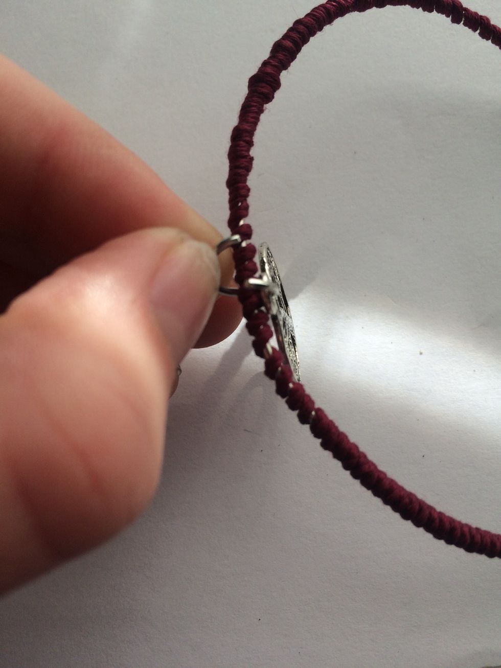 Your almost done! Just cross cross and tie off each end of the string.
