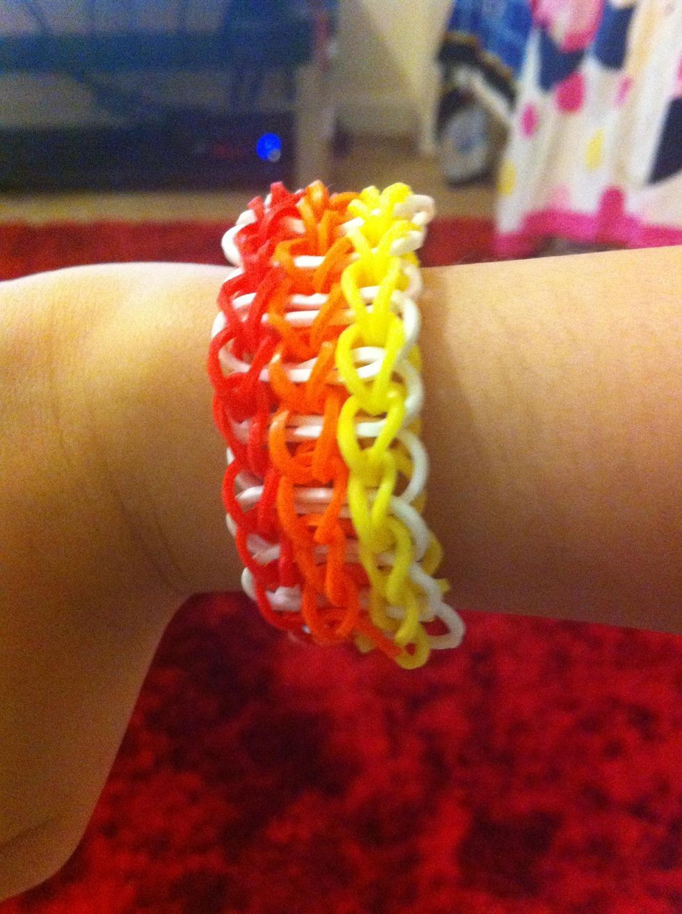 First put your bands on every single pin and make sure your board is turning this way.Your loom should look like this.Then flip your board around and start hooking.Your loom should look like this.