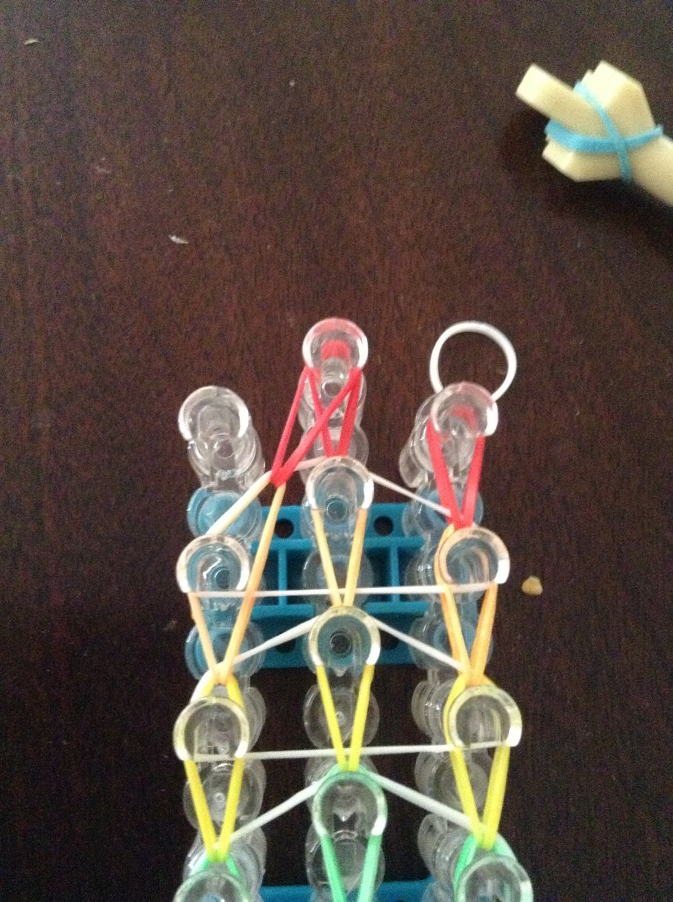 And put the red bands in the middle of the white band. Now add another white band