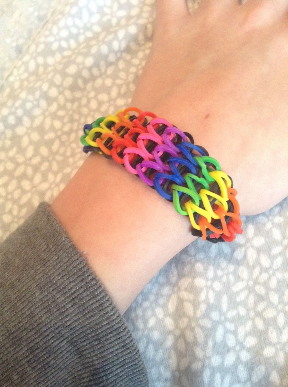 Carefully remove the bracelet from the loom, NOT removing the pick from the end.
