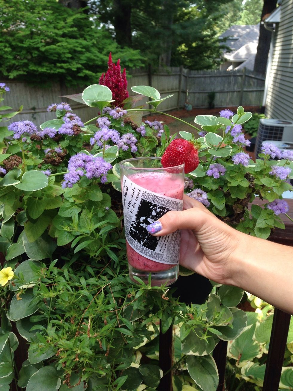 Cut the tops off of the strawberries and add them to the blender 🍓