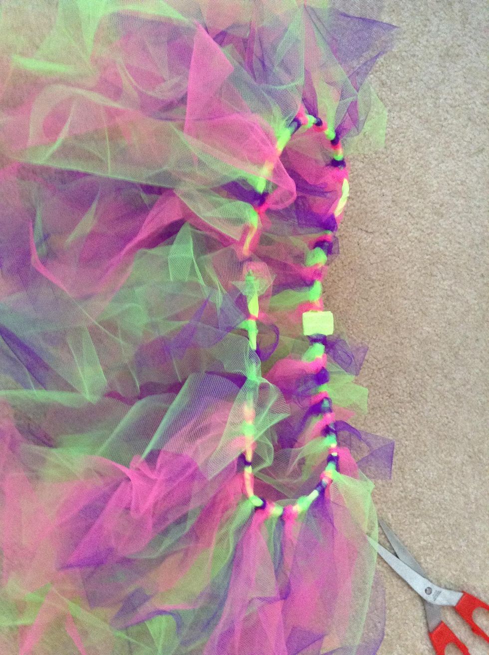 Continually repeat this step with different colors until you are done hint: try folding it and cutting multiple pieces at once. I also had to put the elastic on the lid of a shoe box so it spread out